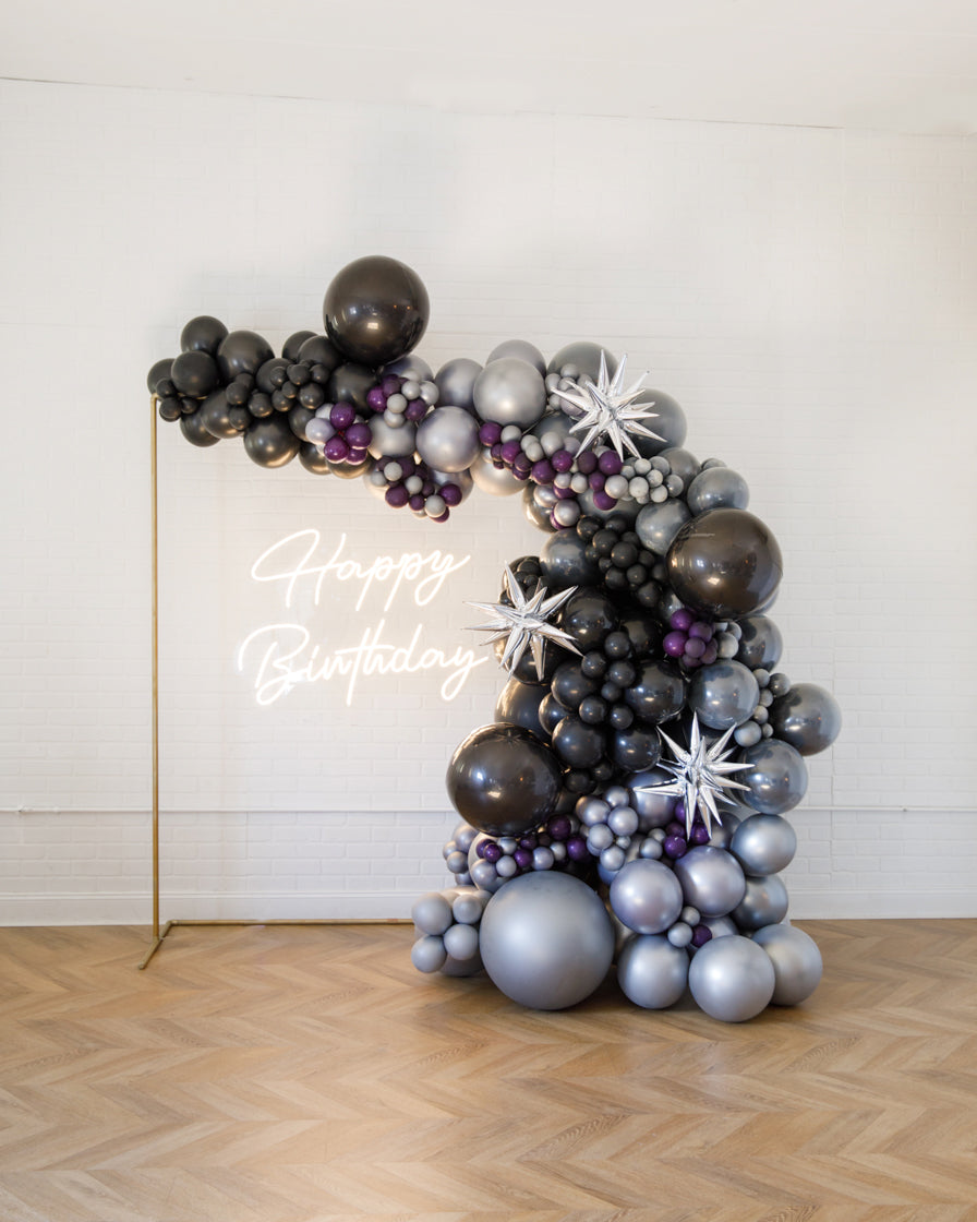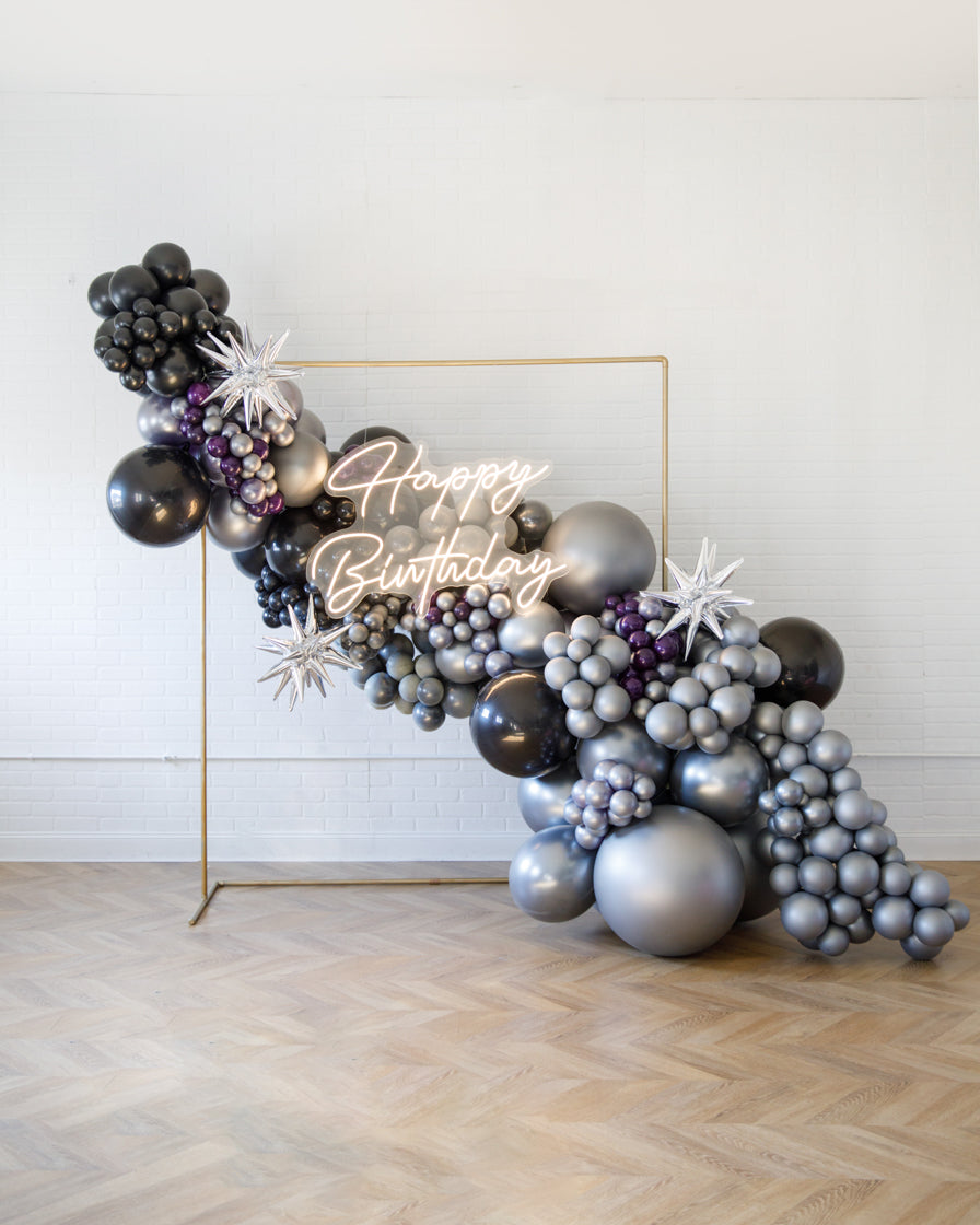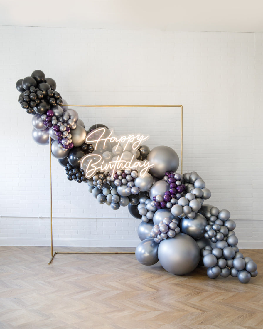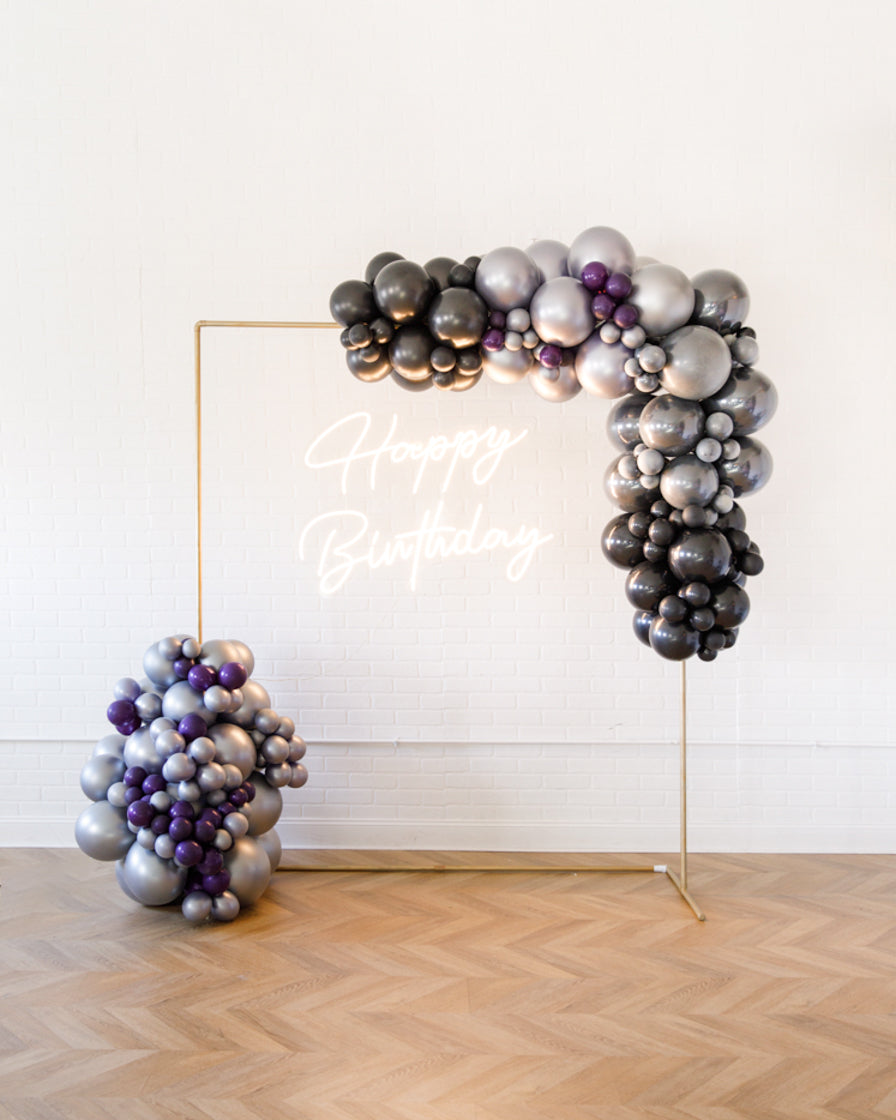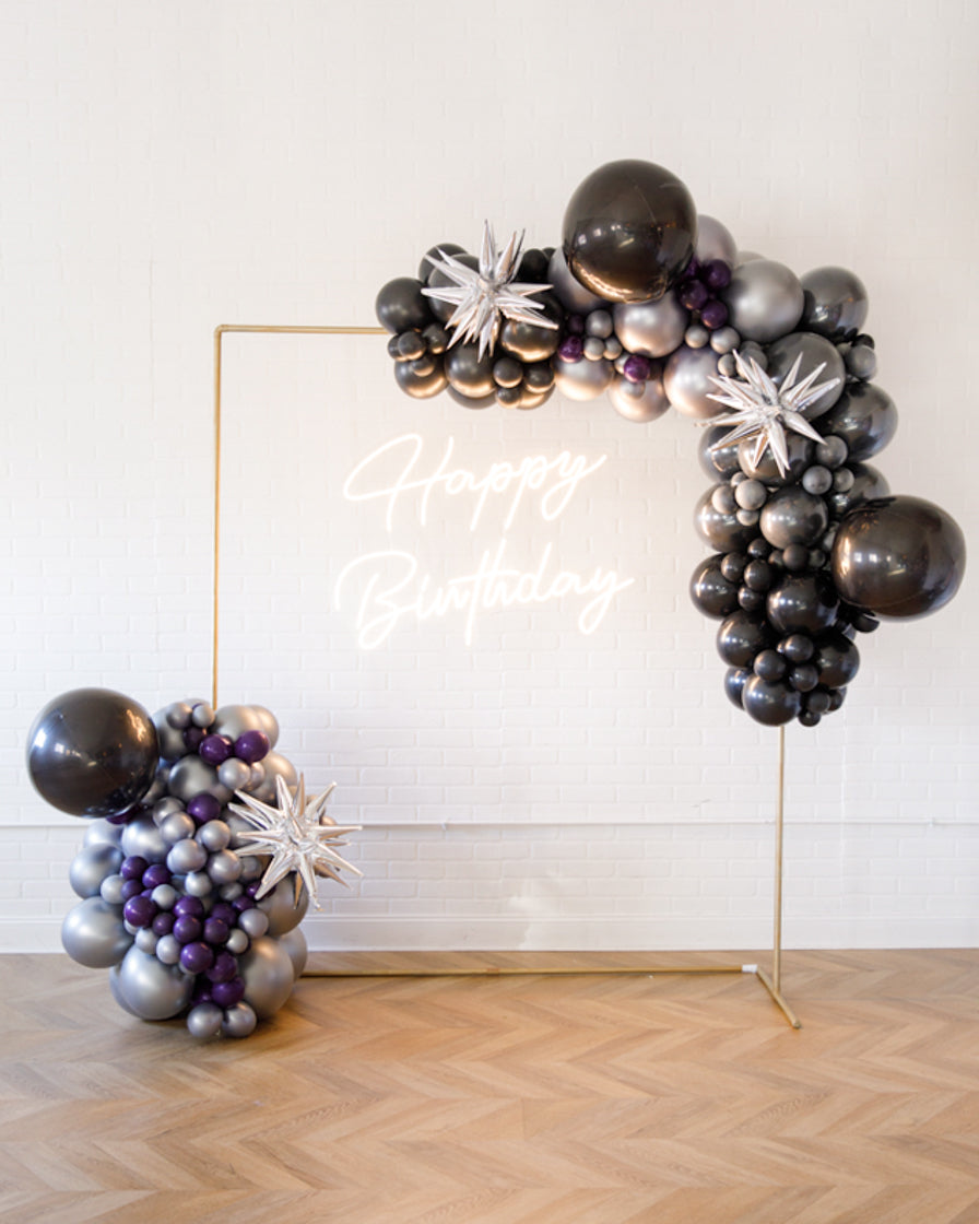Really take your celebration to the next level with our garland frame and neon set. With our bright Happy Birthday neon and organic garland, you'll get plenty of photo-ops your guests will love.