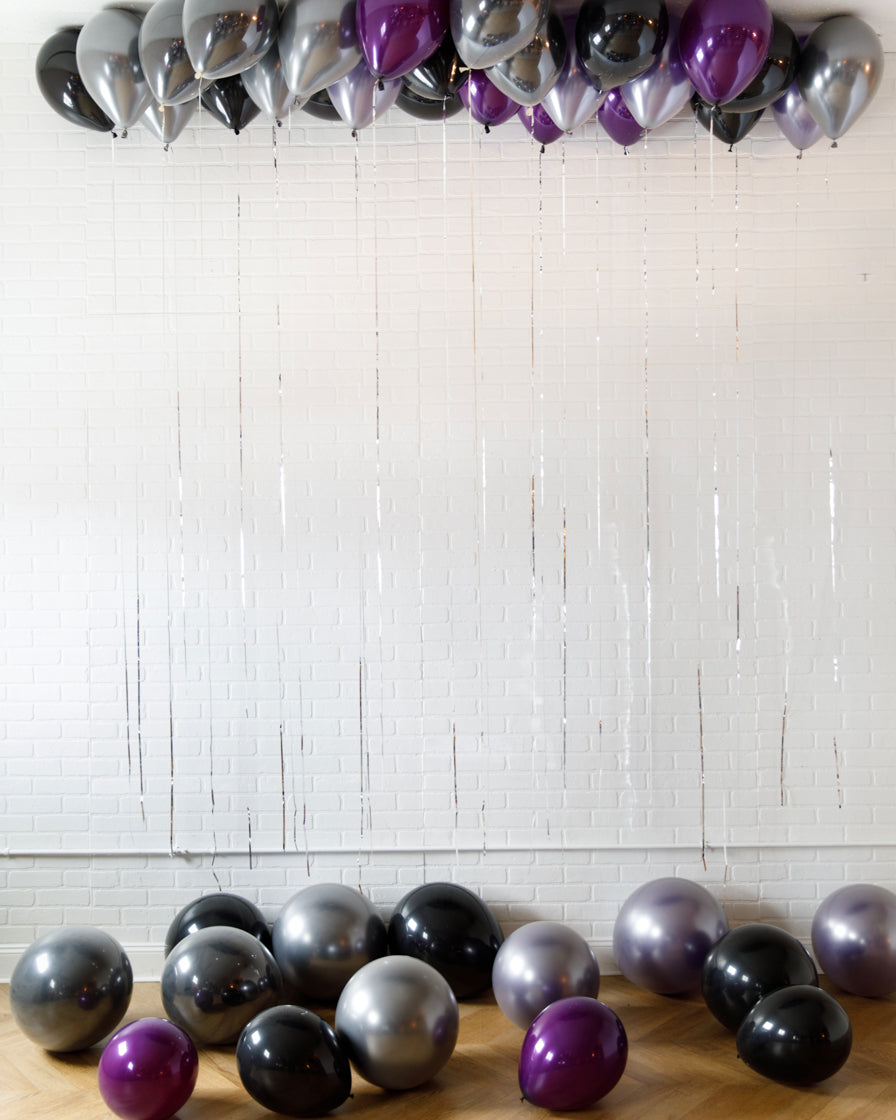 Turn any room into a party with this Ceiling & Floor Balloon Set. Designed in our Black Panther themed palette of black, silvers, and purple these balloons fill your space in snap.