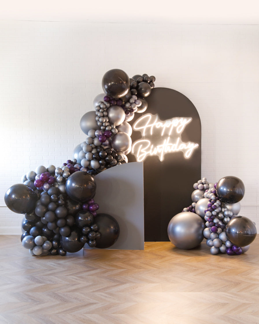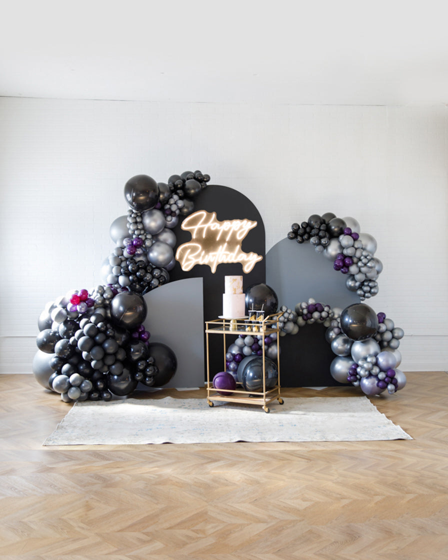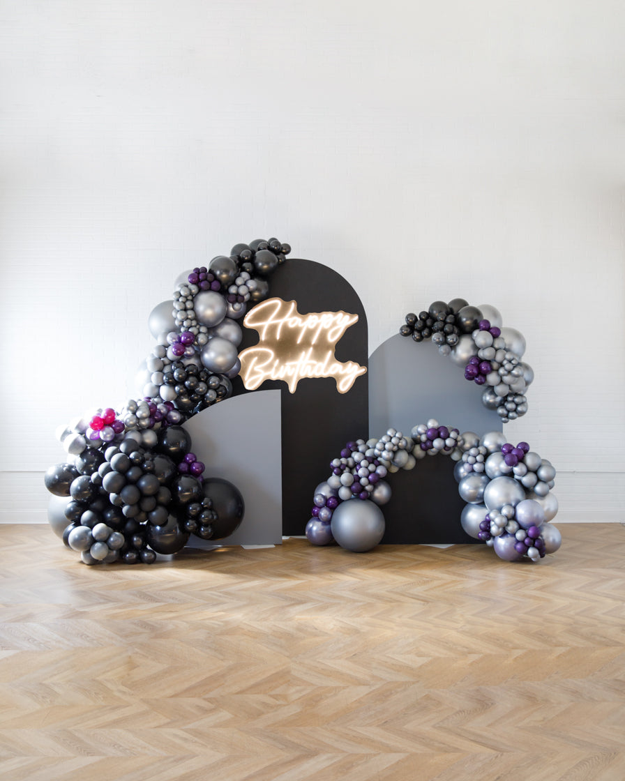 Stand out in style with this panel and balloon garland design. This includes a 2 panel backdrops and with organic balloon garlands to match. Add foil accents to make your photo backdrop stand out even more!