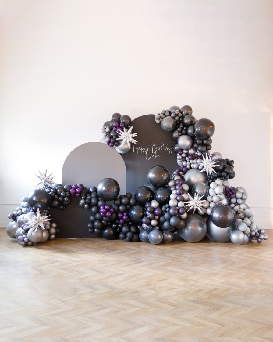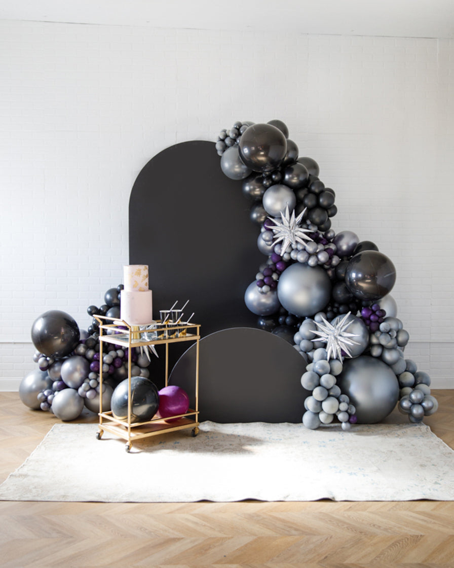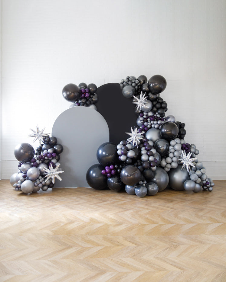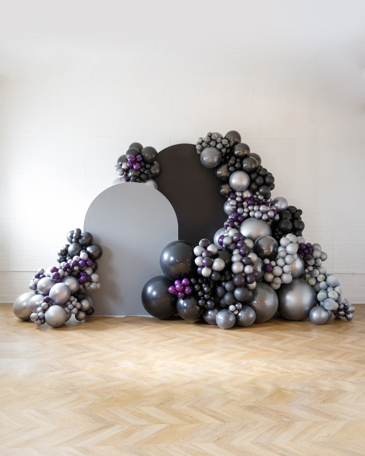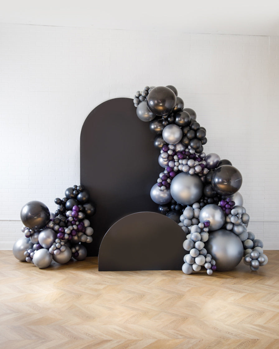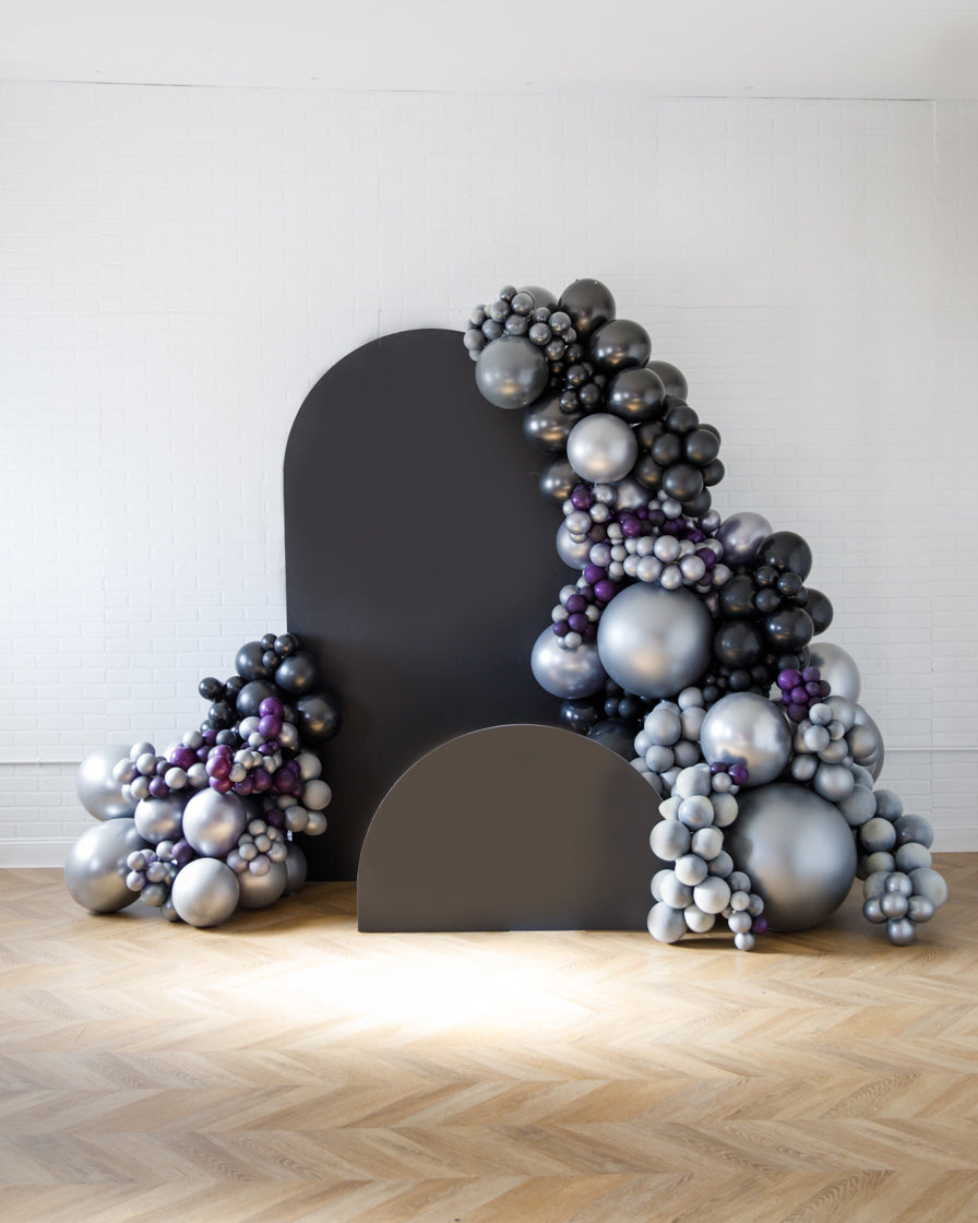 Stand out in style with this panel and balloon garland design. This includes a panel backdrops with organic balloon garlands to match. Add foil accents to make your photo backdrop stand out even more!