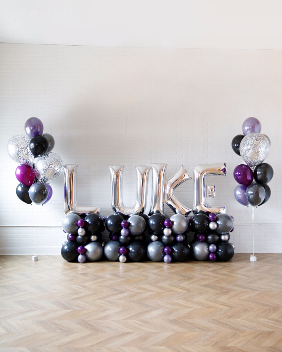 Celebrate them boldly with our name pedestal and confetti bouquet set! This includes two confetti bouquets and a custom name balloon pedestal in Black Panther inspired shades. Use this as at your entry, sweets table or for photos at your teen's birthday.