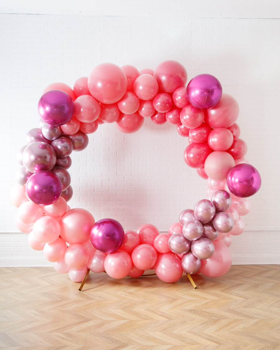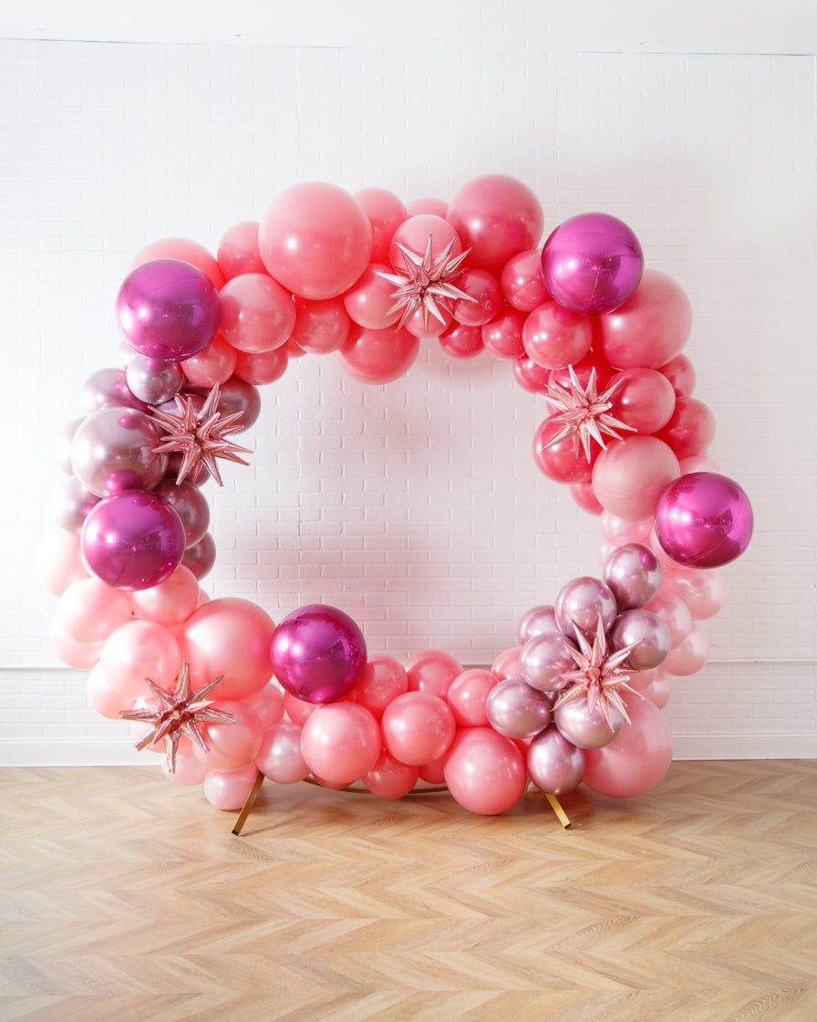 Make this a celebration you'll never forget with our signature garland on circular frame. This design creates an instant photo backdrop that your guests will love! With a gold frame this stand alone design can be used in any space with ease.