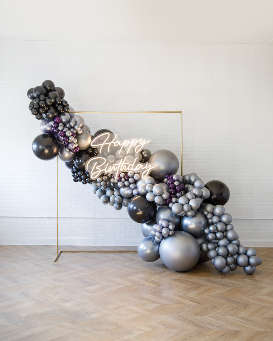 Really take your celebration to the next level with our garland frame and neon set. With our bright Happy Birthday neon and organic garland, you'll get plenty of photo-ops your guests will love.
