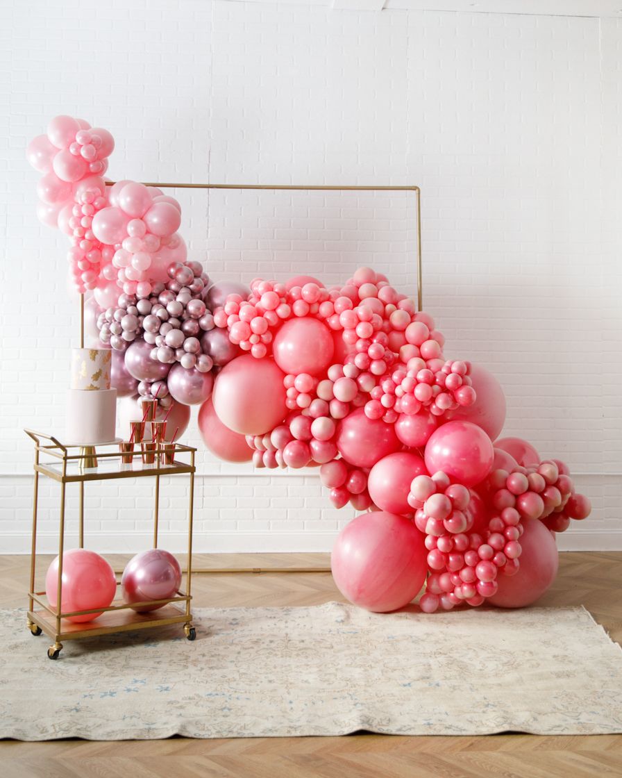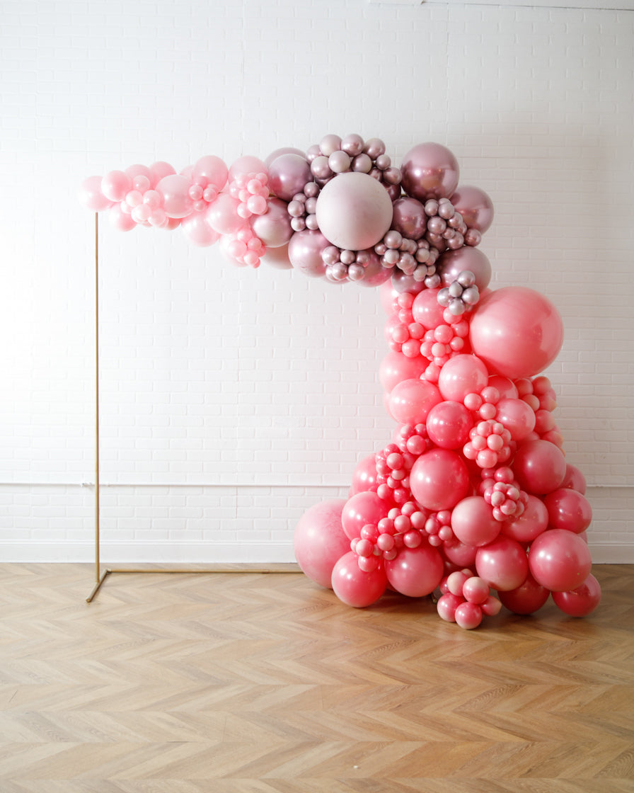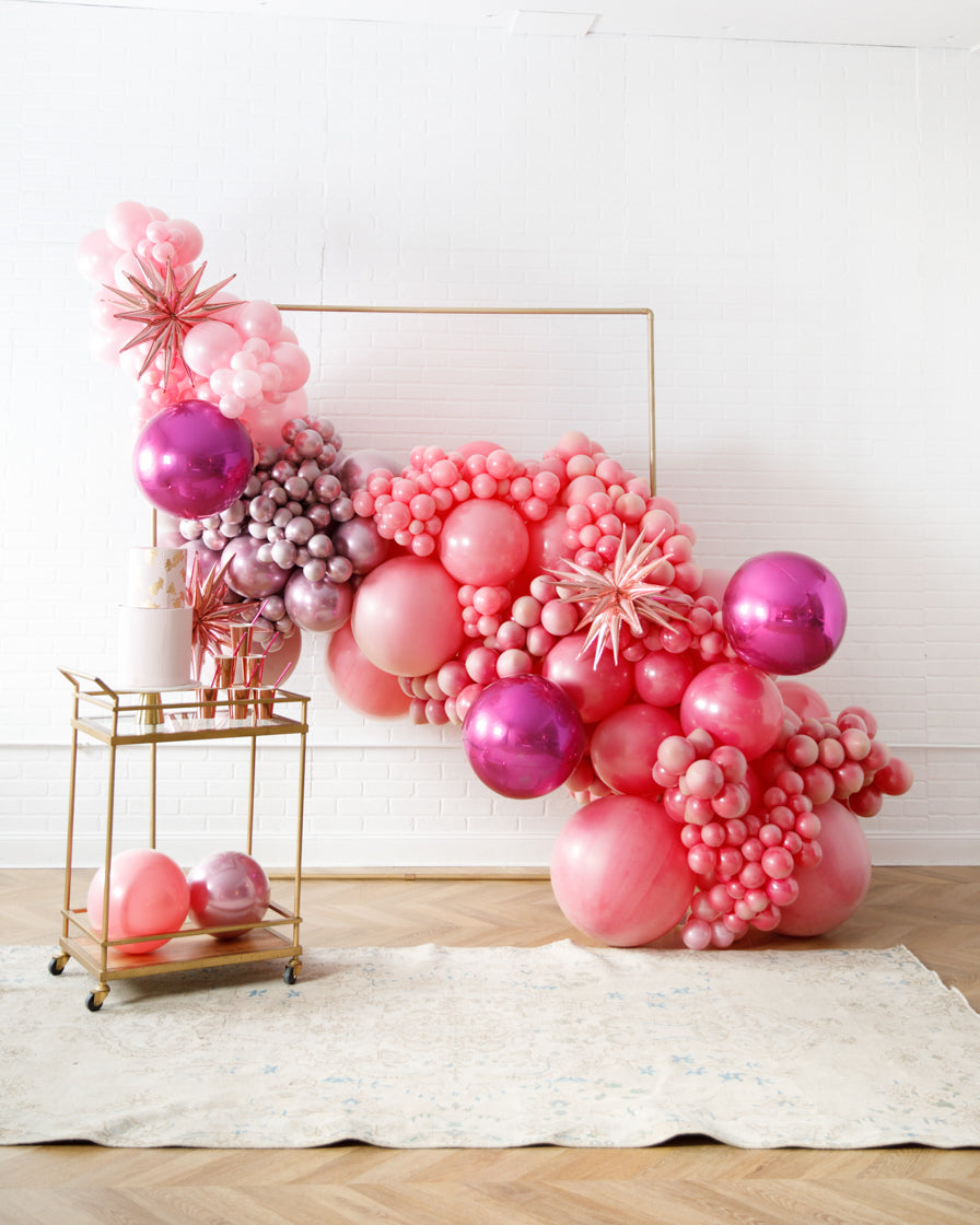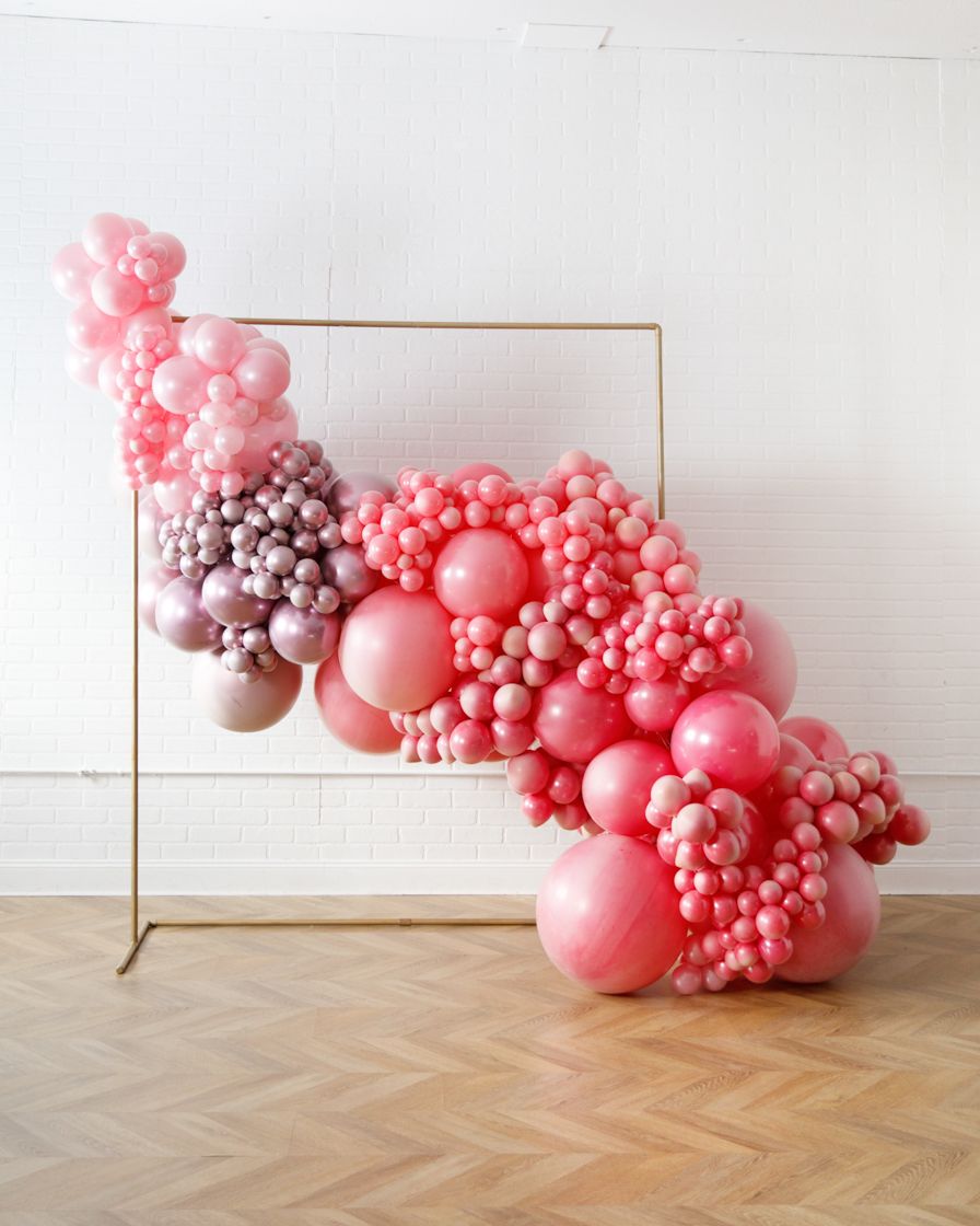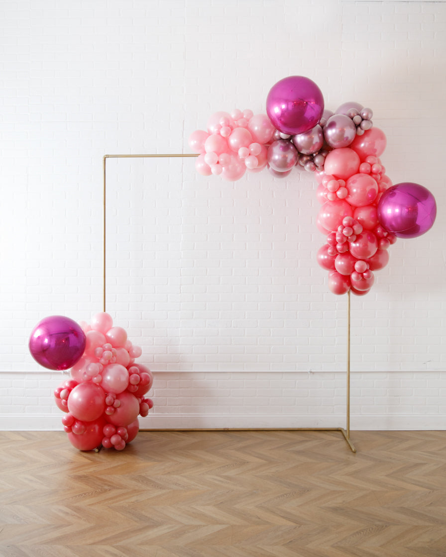 Celebrate boldly with our signature gold frame and diagonal organic garland design! This includes a full balloon garland cascading across the frame, perfect for photos. With added foils, it's an even grander affair!