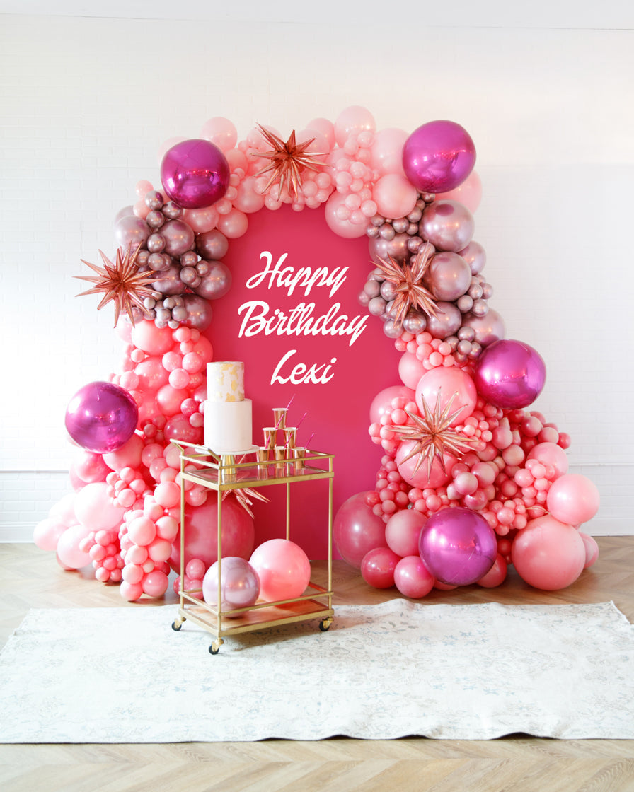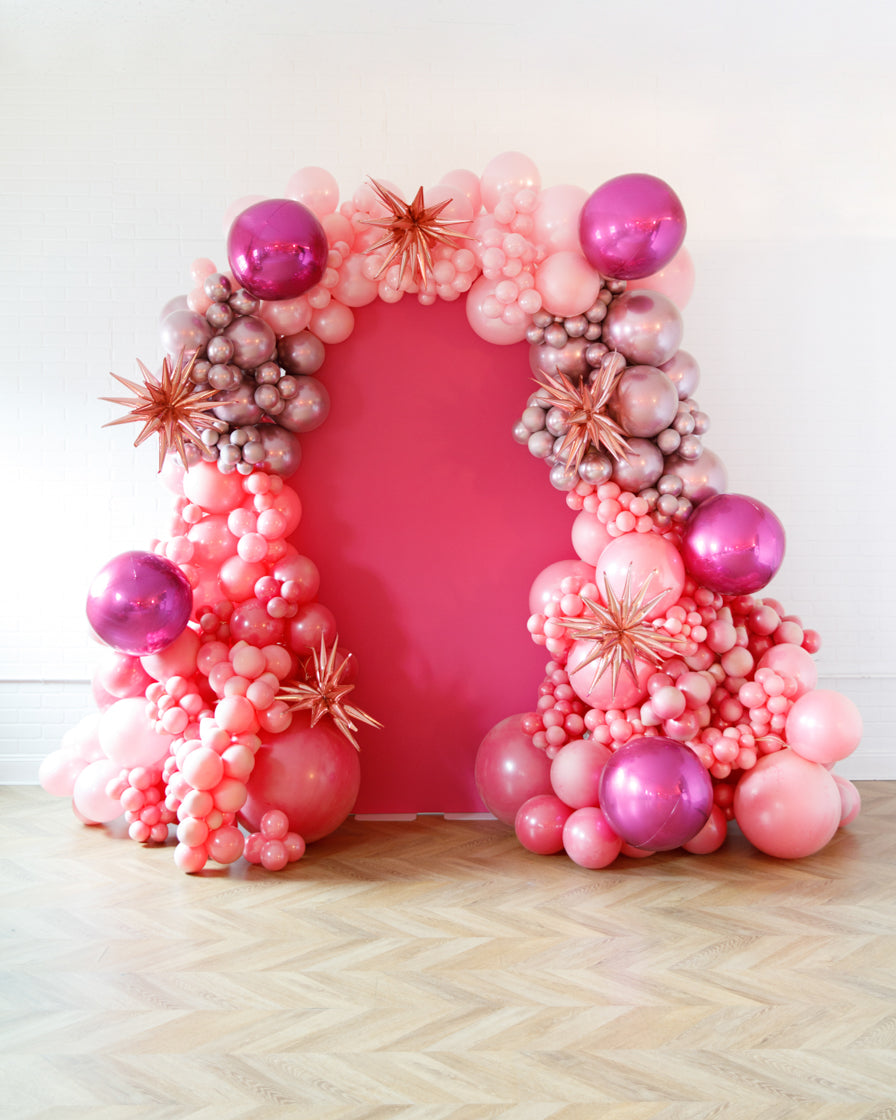 Stand out in style with this panel and balloon garland design. This includes a 7ft panel backdrop with organic balloon garland to match. Add foil accents to make your photo backdrop stand out even more!