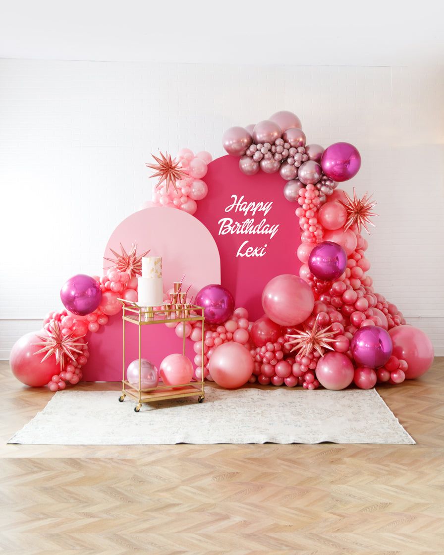 Stand out in style with this panel and balloon garland design. This includes a panel backdrops with organic balloon garlands to match. Add foil accents to make your photo backdrop stand out even more!