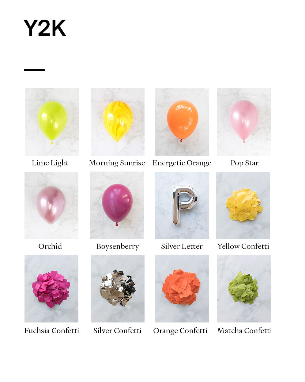 Celebrate them boldly with our name pedestal and confetti bouquet set! This includes two confetti bouquets and a custom name balloon pedestal in Y2K inspired shades. Use this as at your entry, sweets table or for photos at your teen's birthday.