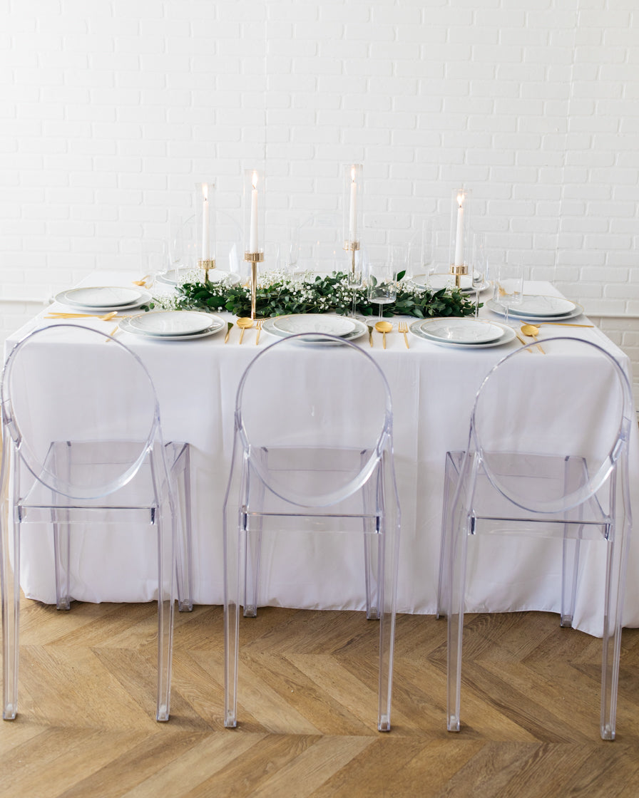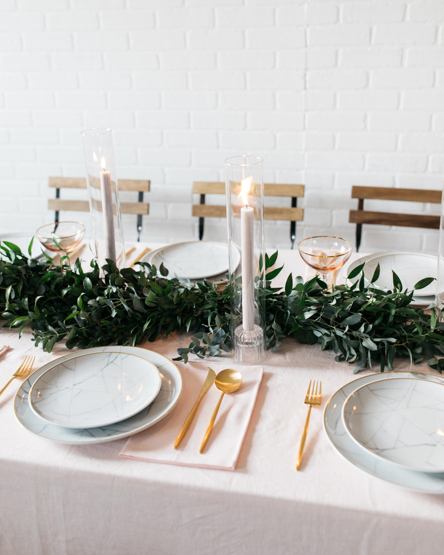 This set features a lush greenery runner that effortlessly spans the table, add some warm light to your centerpiece with the option of clear votive or taper candles. It's the perfect ensemble for creating a modern and effortlessly elegant centerpiece that seamlessly blends lush greenery and the warm glow of candles into your celebration.