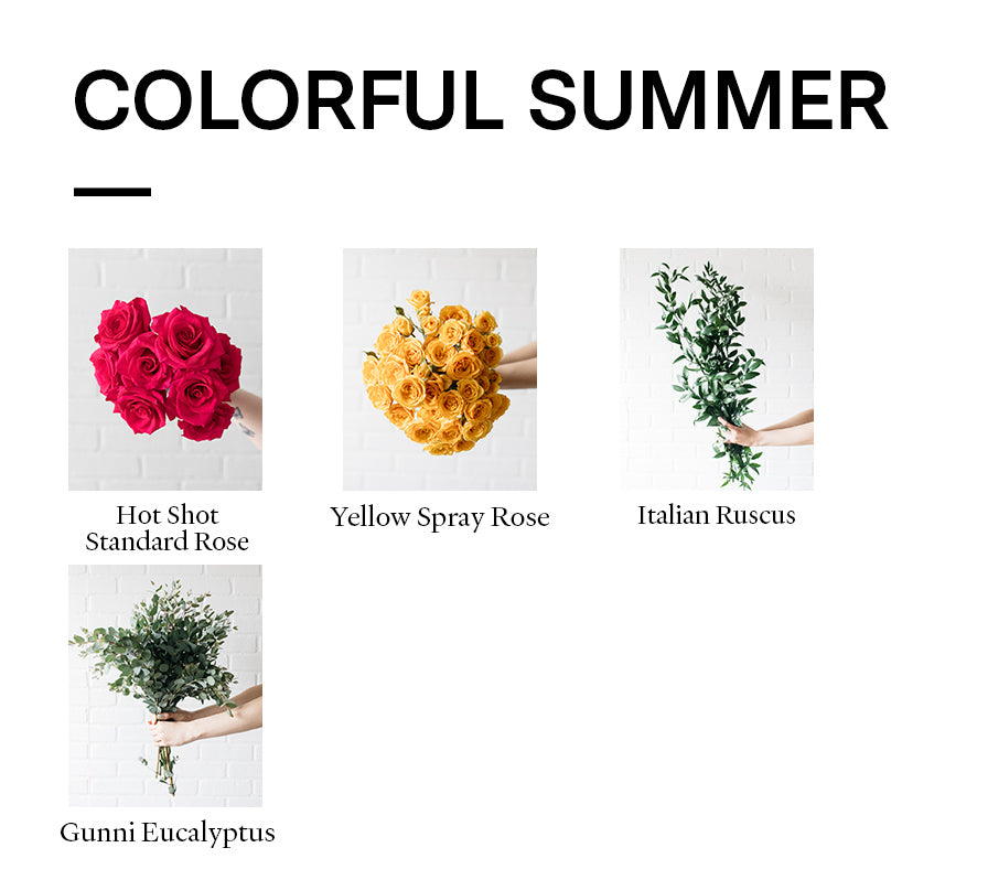 Florals - shades of reds, pinks, oranges, yellows, and greens