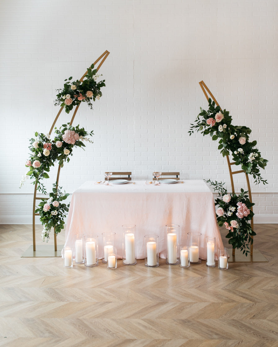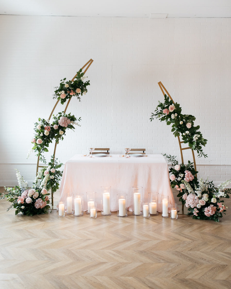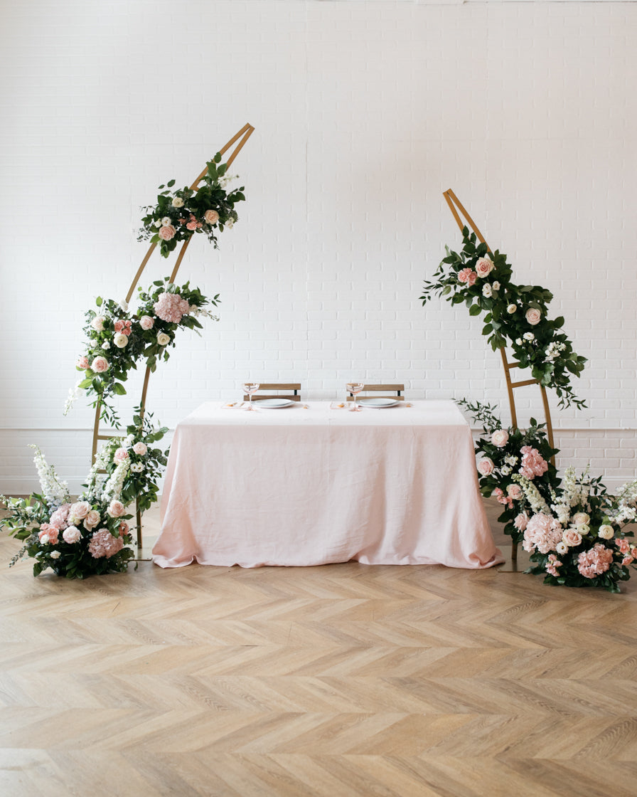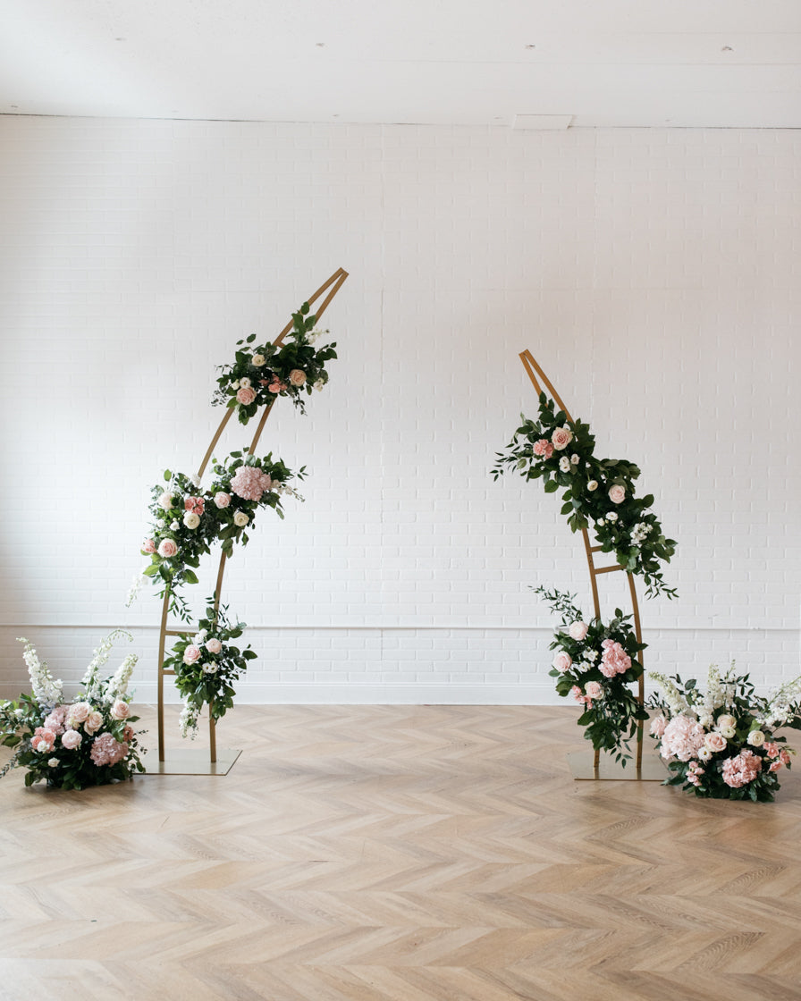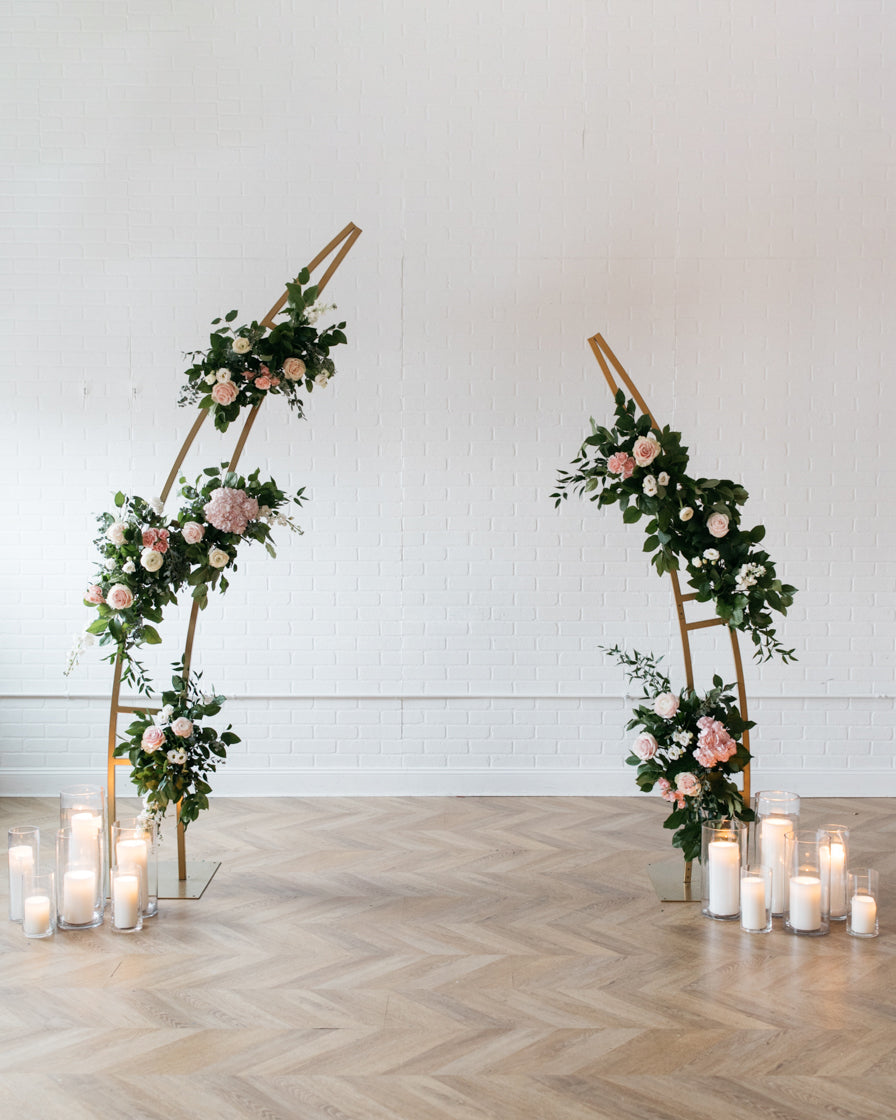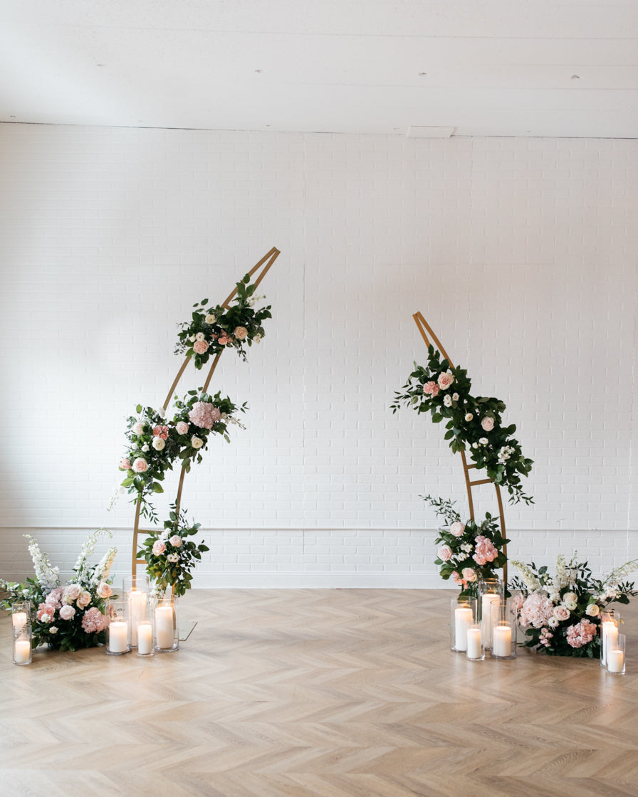 Explore our Crescent Moon Stands, delicately adorned with intertwined florals, embodying modern elegance for your wedding. Timeless and romantic, they're perfect for ceremonies and photo ops alike. Enhance with floral jardinieres and candles for added impact and warmth, creating an atmosphere that's simply enchanting