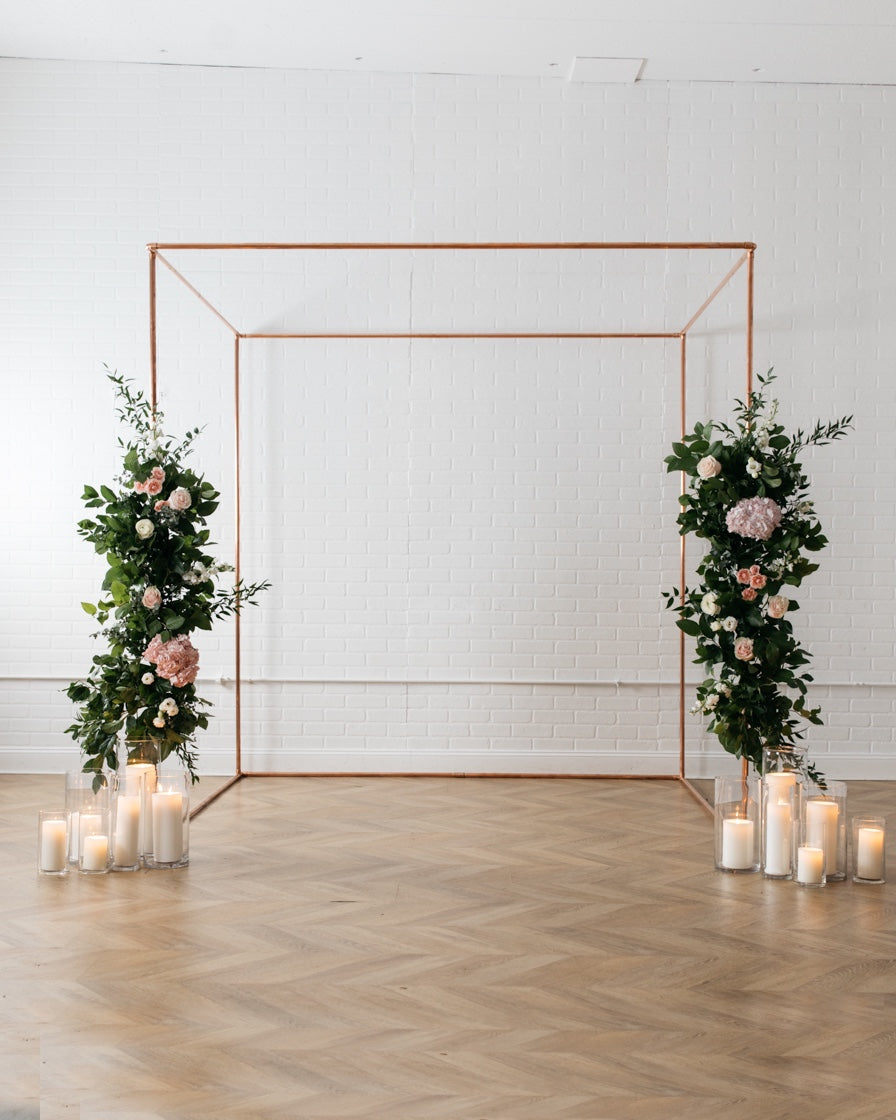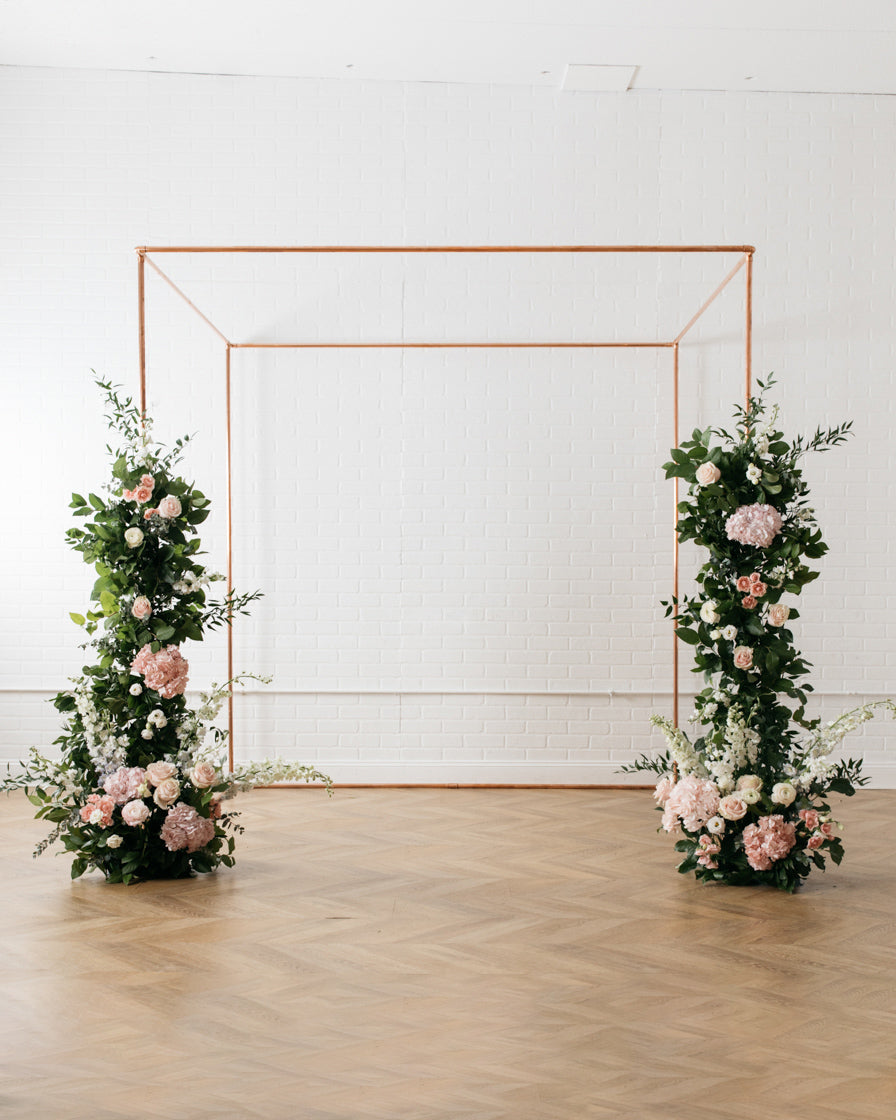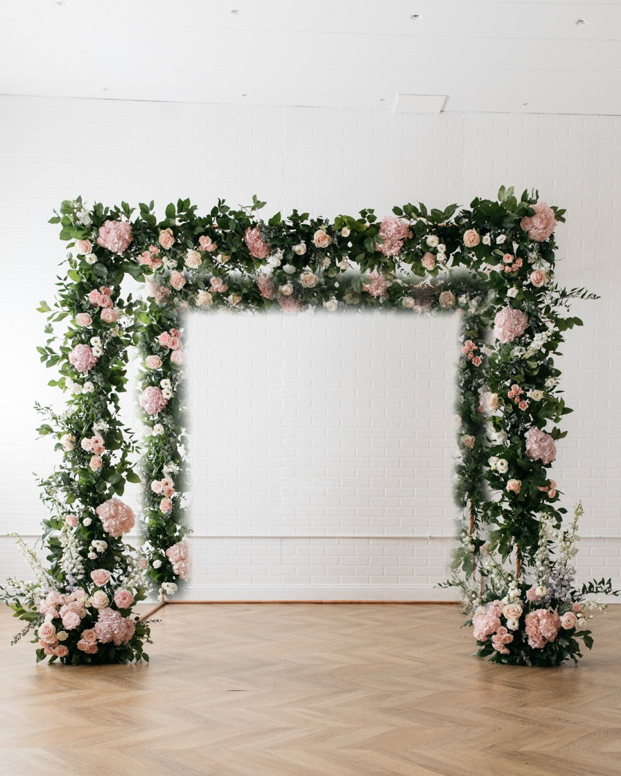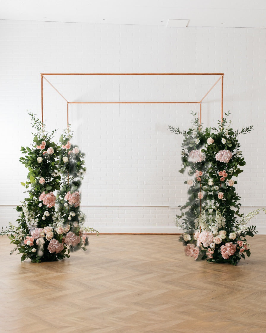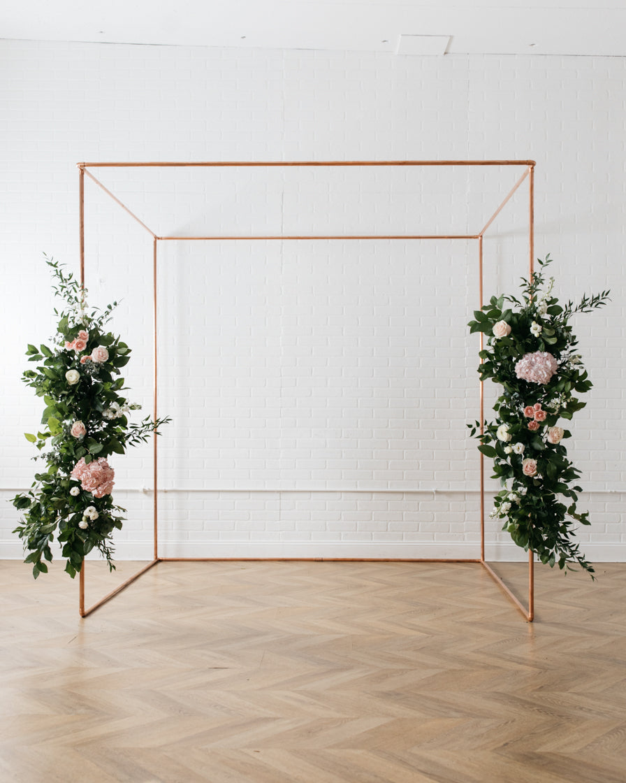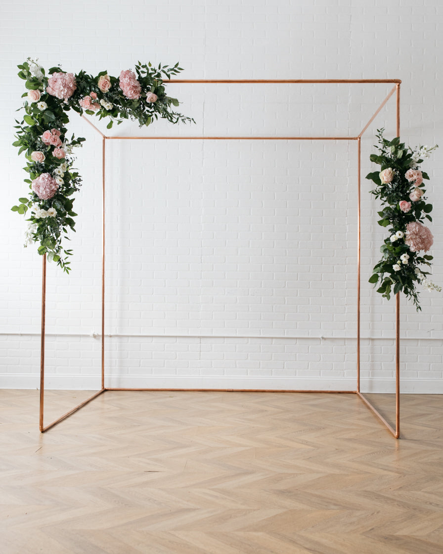 Introducing our Chuppah frame with a stunning installation of greenery and florals, designed to complement your wedding theme and venue seamlessly. Whether for the altar ceremony or reception, choose the option that best suits your style. Let us handle the installation, ensuring a breathtaking focal point for your special day.