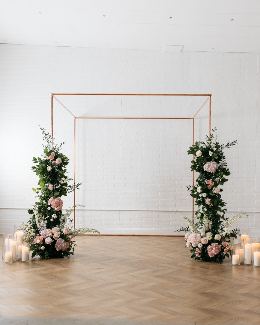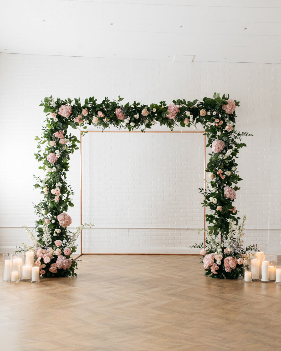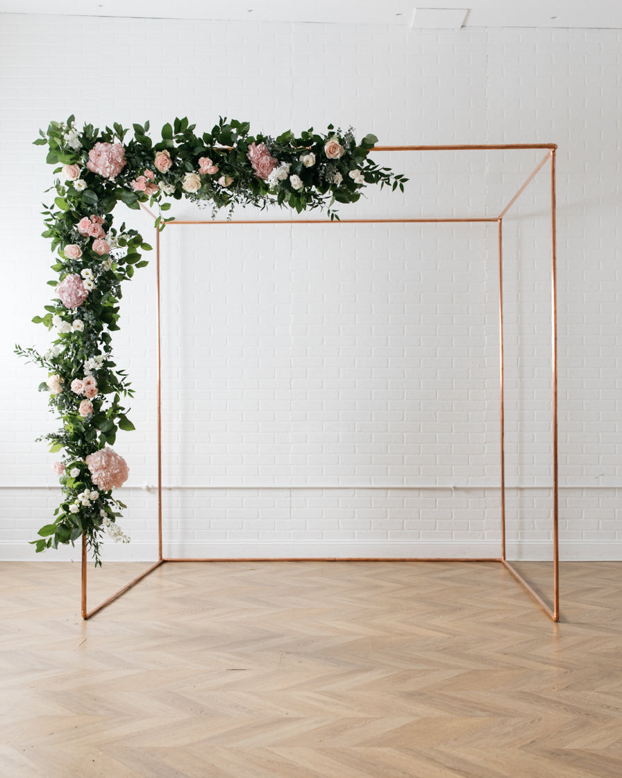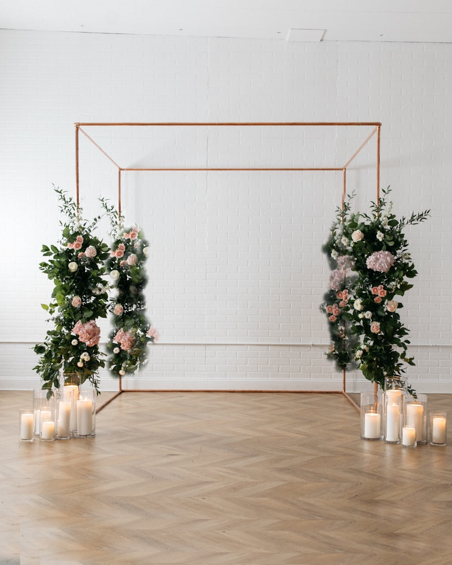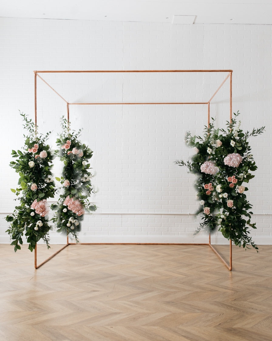 Introducing our Chuppah frame with a stunning installation of greenery and florals, designed to complement your wedding theme and venue seamlessly. Whether for the altar ceremony or reception, choose the option that best suits your style. Let us handle the installation, ensuring a breathtaking focal point for your special day.