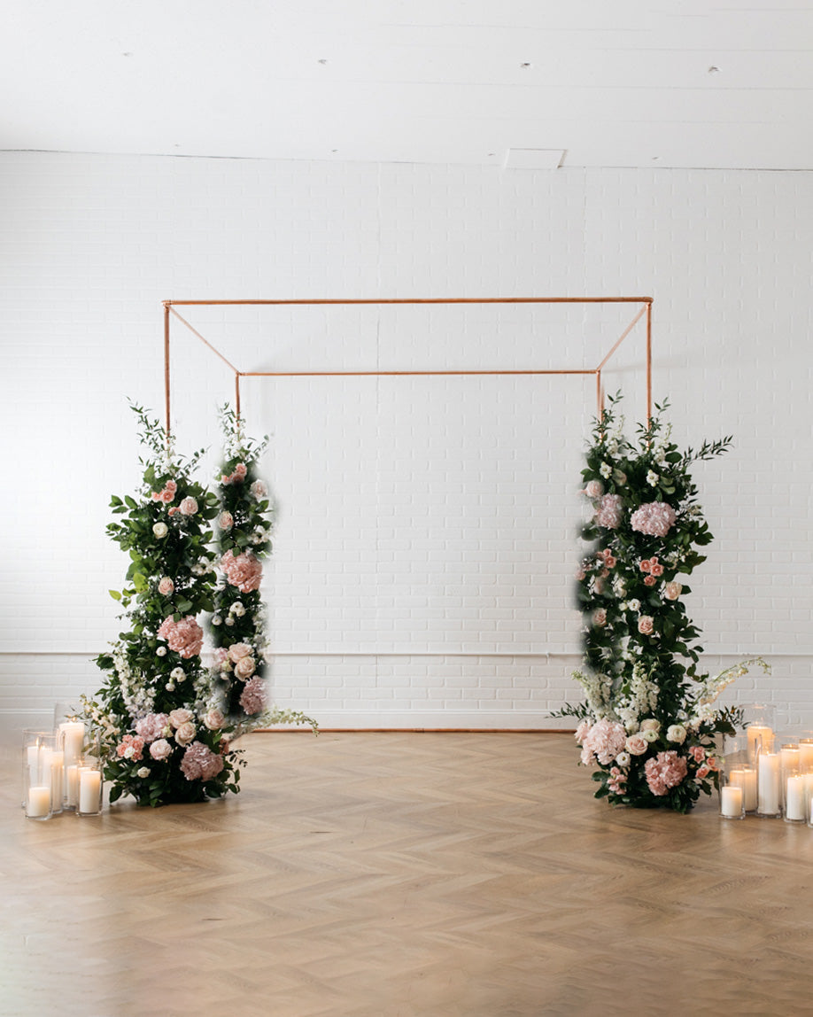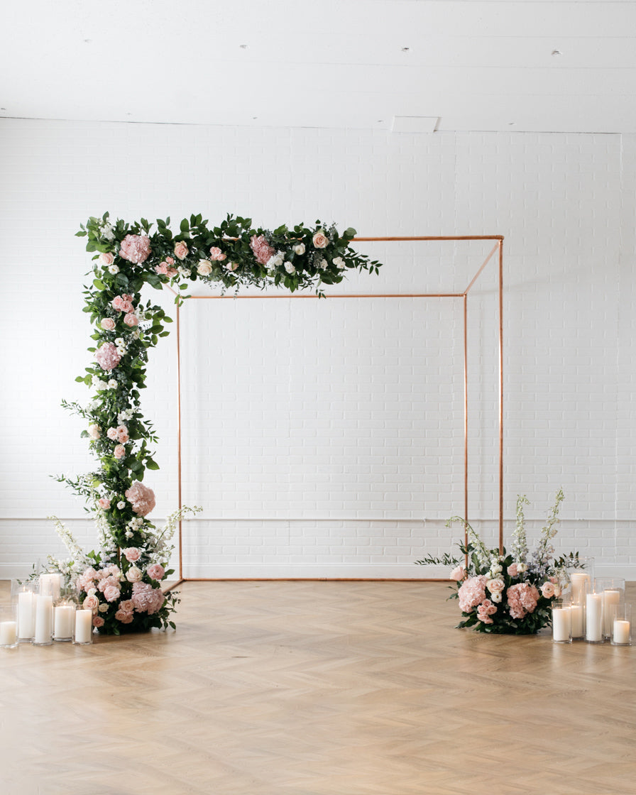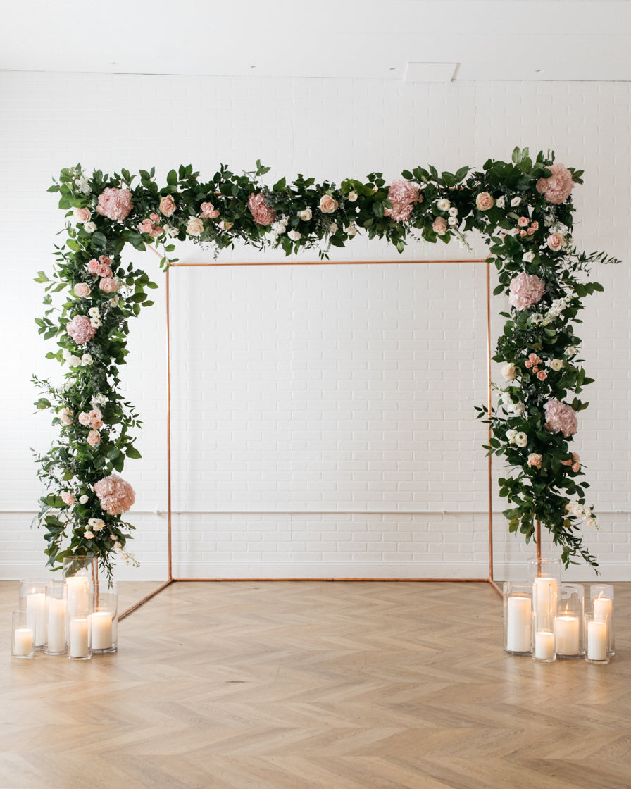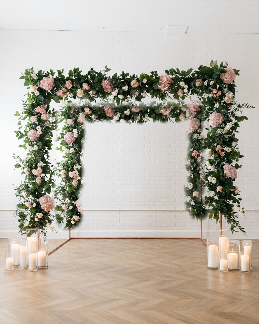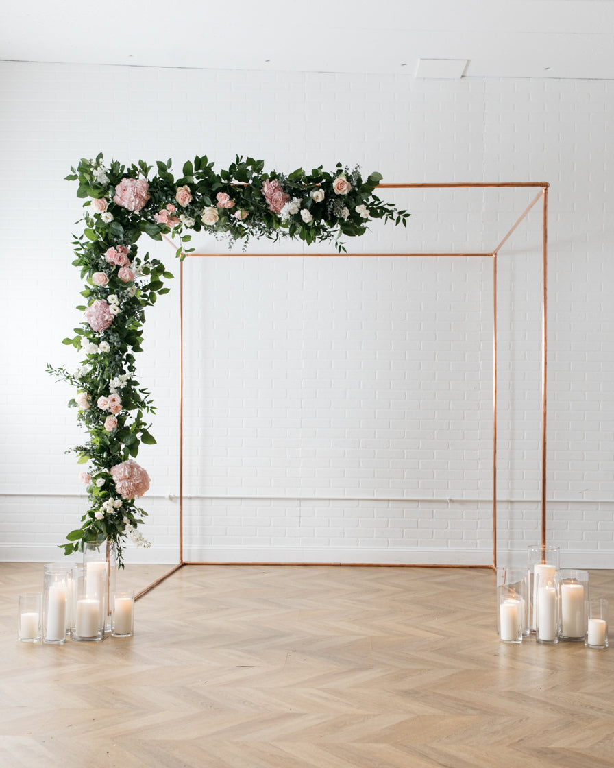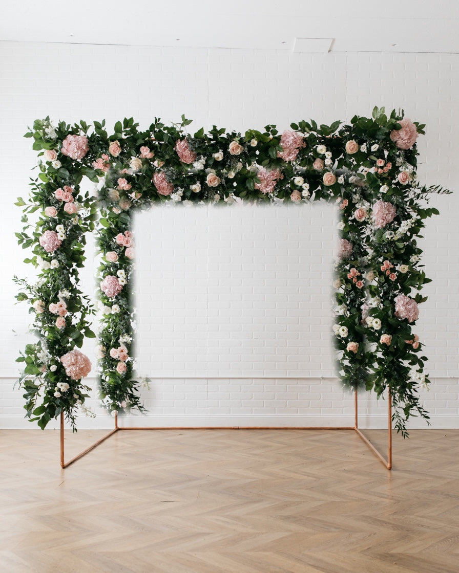 Introducing our Chuppah frame with a stunning installation of greenery and florals, designed to complement your wedding theme and venue seamlessly. Whether for the altar ceremony or reception, choose the option that best suits your style. Let us handle the installation, ensuring a breathtaking focal point for your special day.