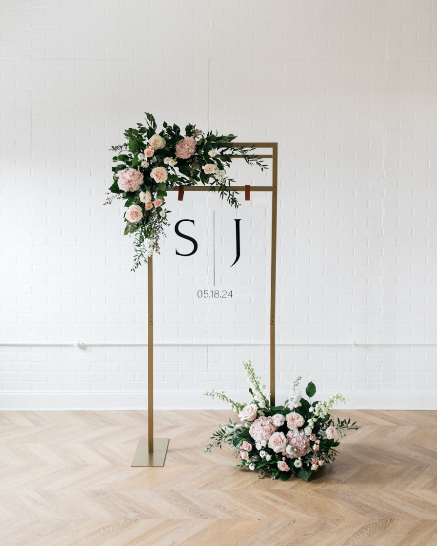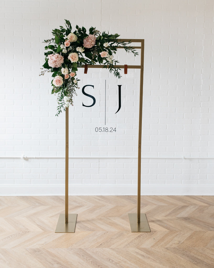 Welcome your guests in style with our Radiate Sign, a stunning rectangular frame designed to greet guests with elegance. Personalize this clear signage to suit your venue perfectly, choosing from a variety of options to create the impact you desire. Add a touch of floral beauty with a floral burst or jardiniere added to it.