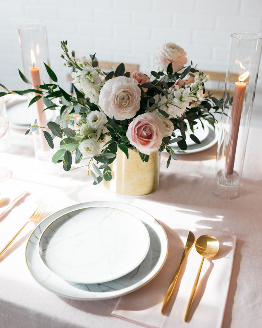 - One Large Floral Arrangement in your choice of a glass, white or gold vase