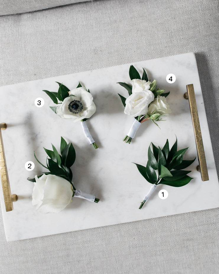 Details unite wedding party together, and his boutonnière is no exception. Boutonnière made for either the groom or his groomsmen they will have a chic way to coordinate perfectly at the ceremony. Choose between our 4 options that offer the choice to mix and match between greenery, roses, or anemone to customize your perfect boutonnière.