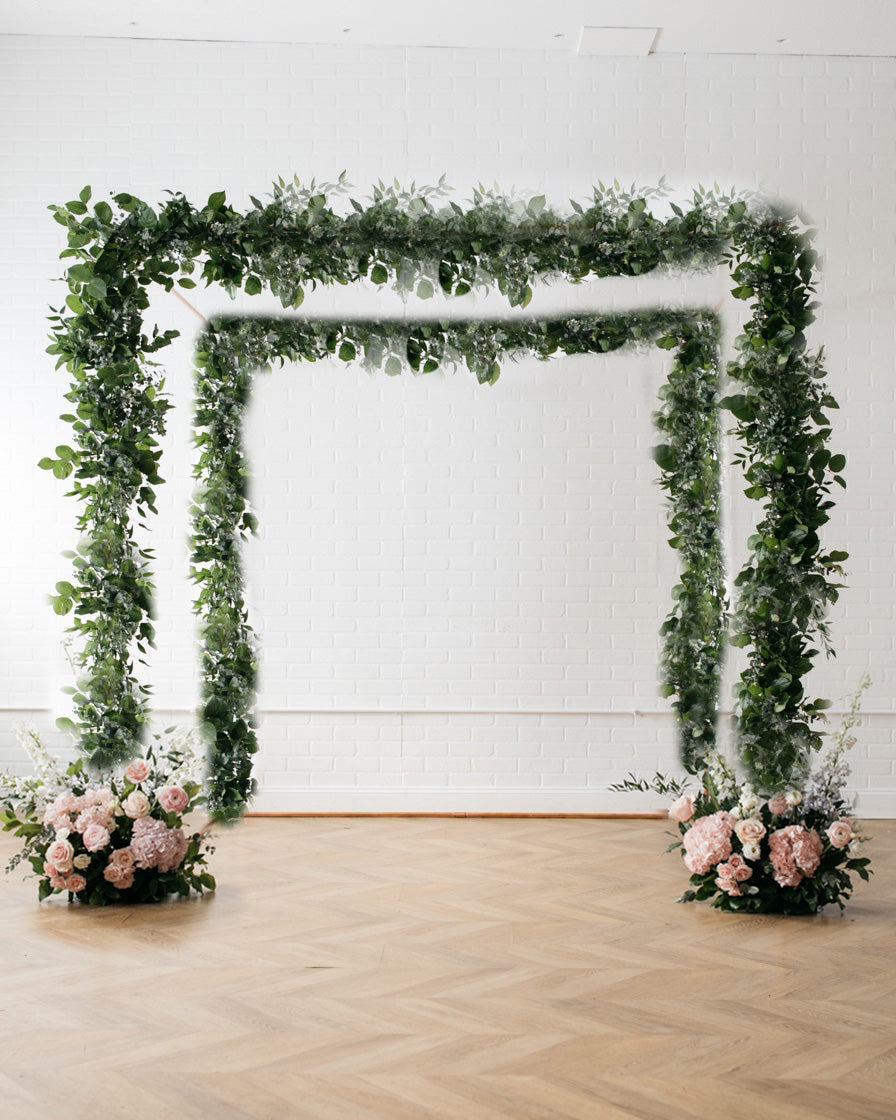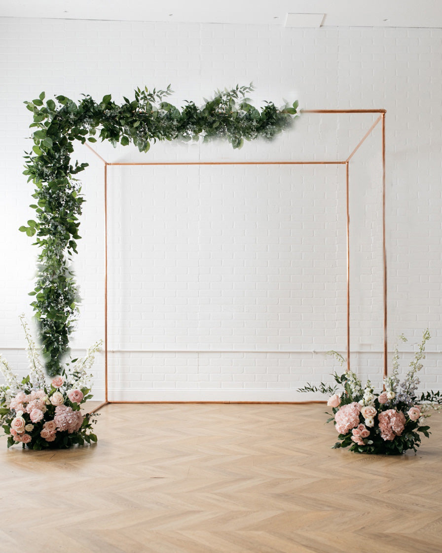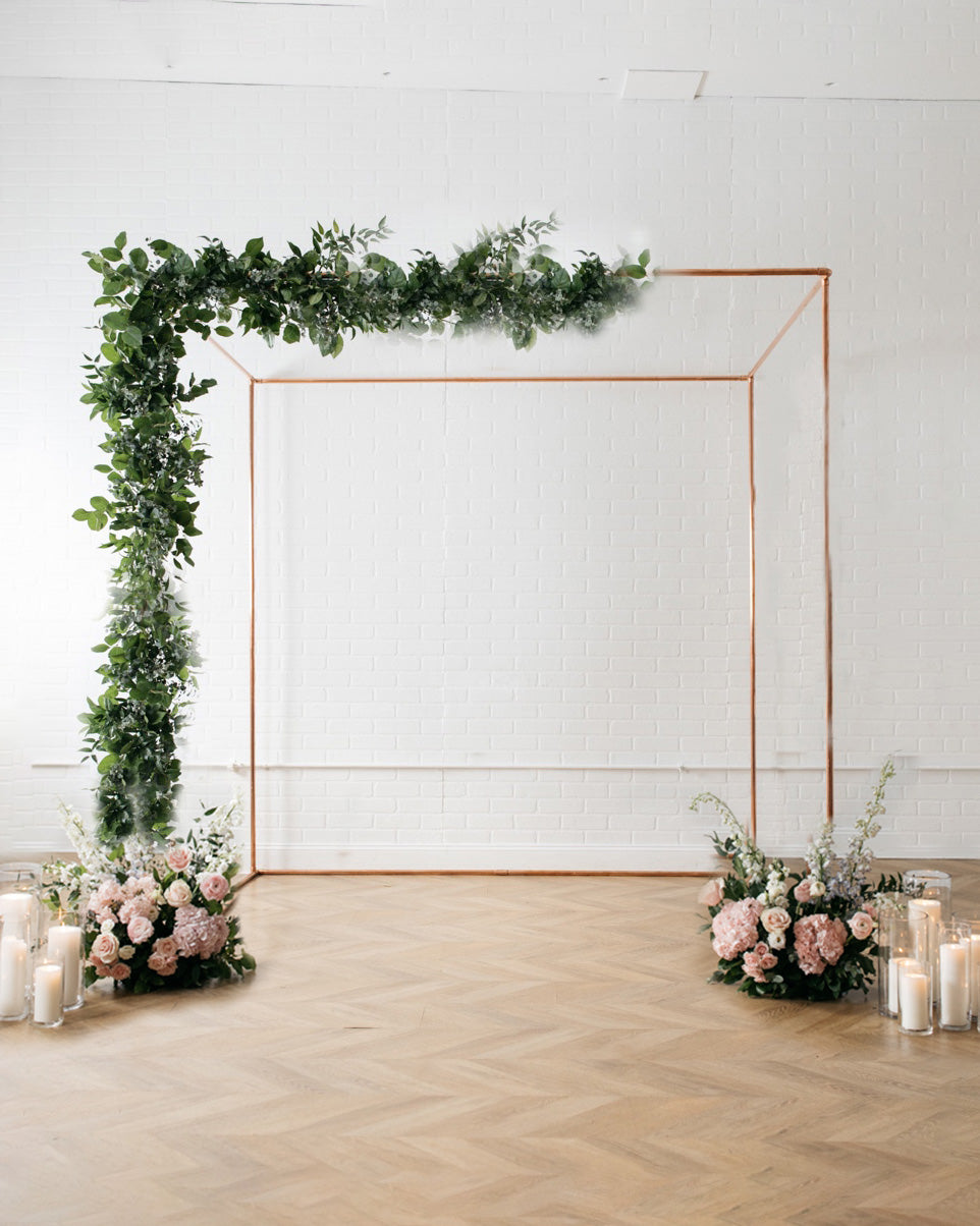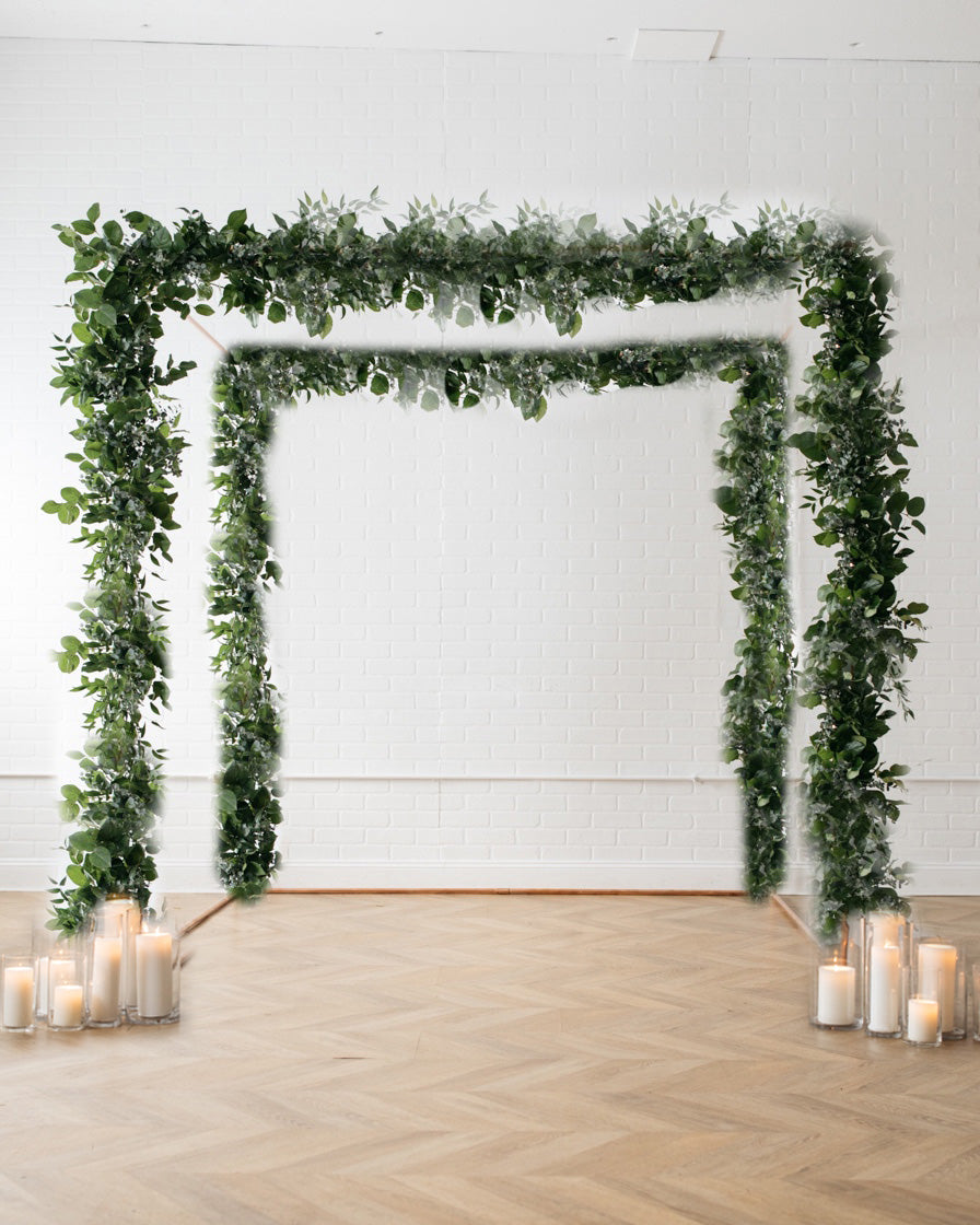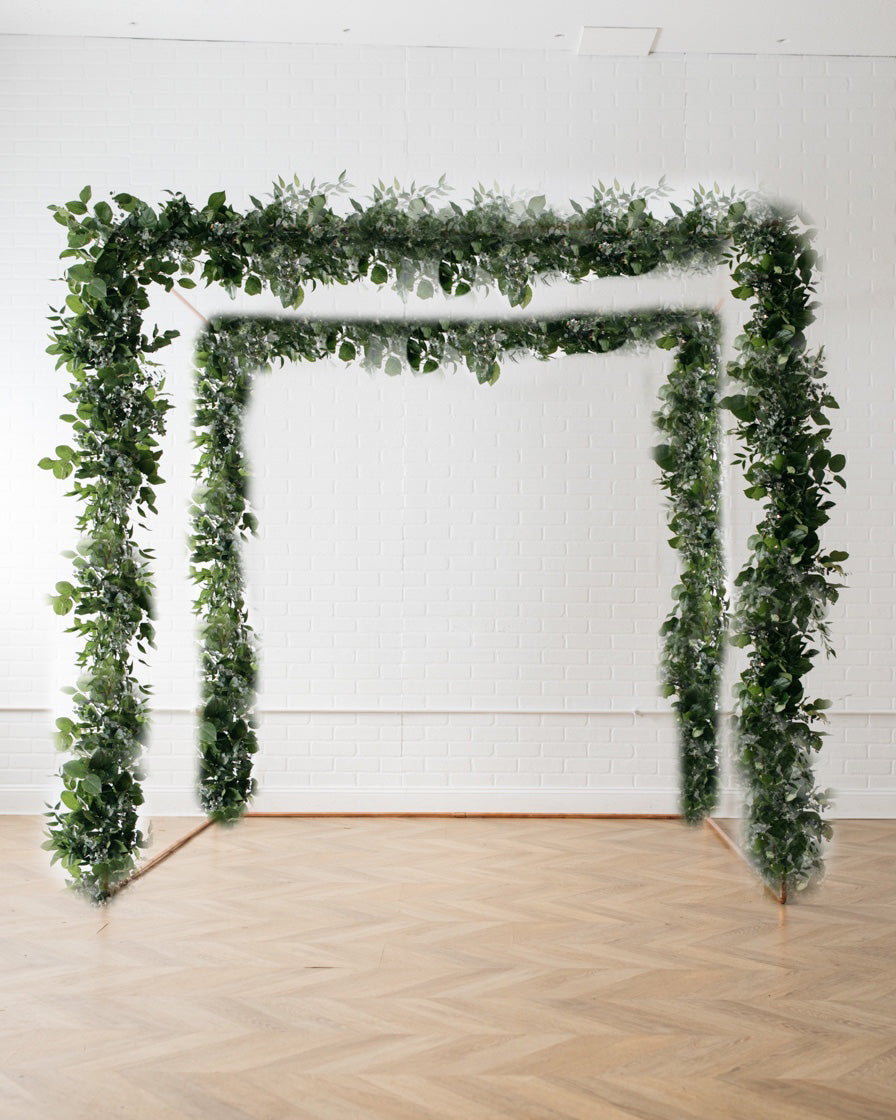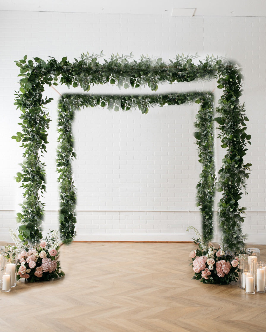 Introducing our Chuppah frame with a stunning installation of natural greenery, designed to complement your wedding theme and venue seamlessly. Whether for the altar ceremony or reception, choose the option that best suits your style. Let us handle the installation, ensuring a breathtaking focal point for your special day.