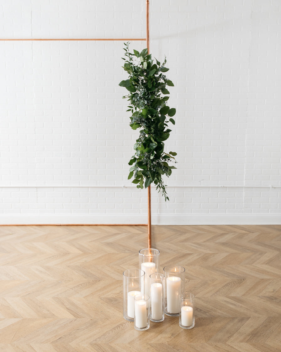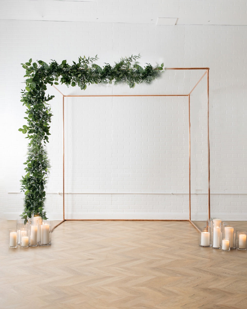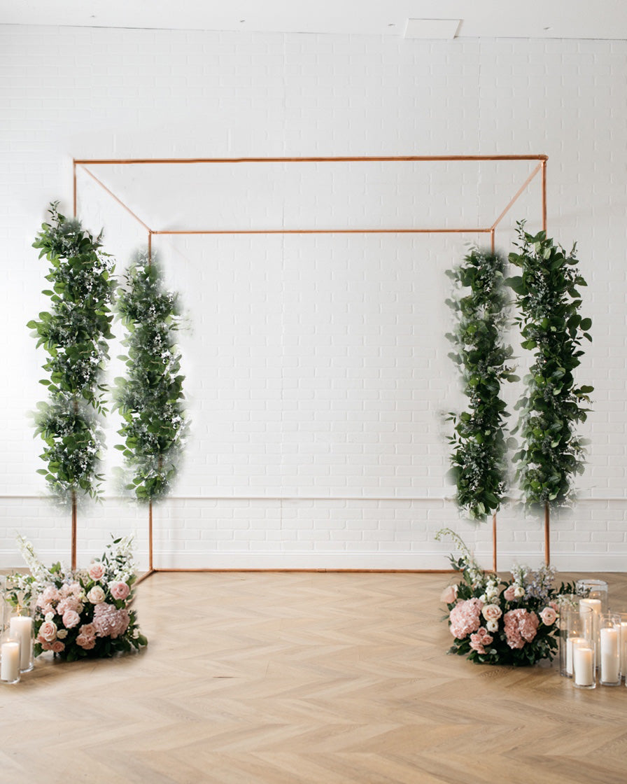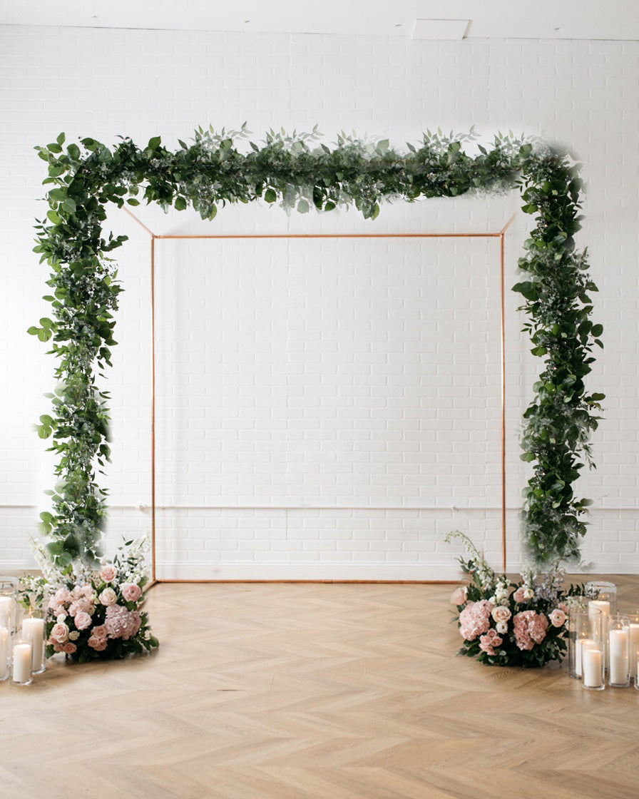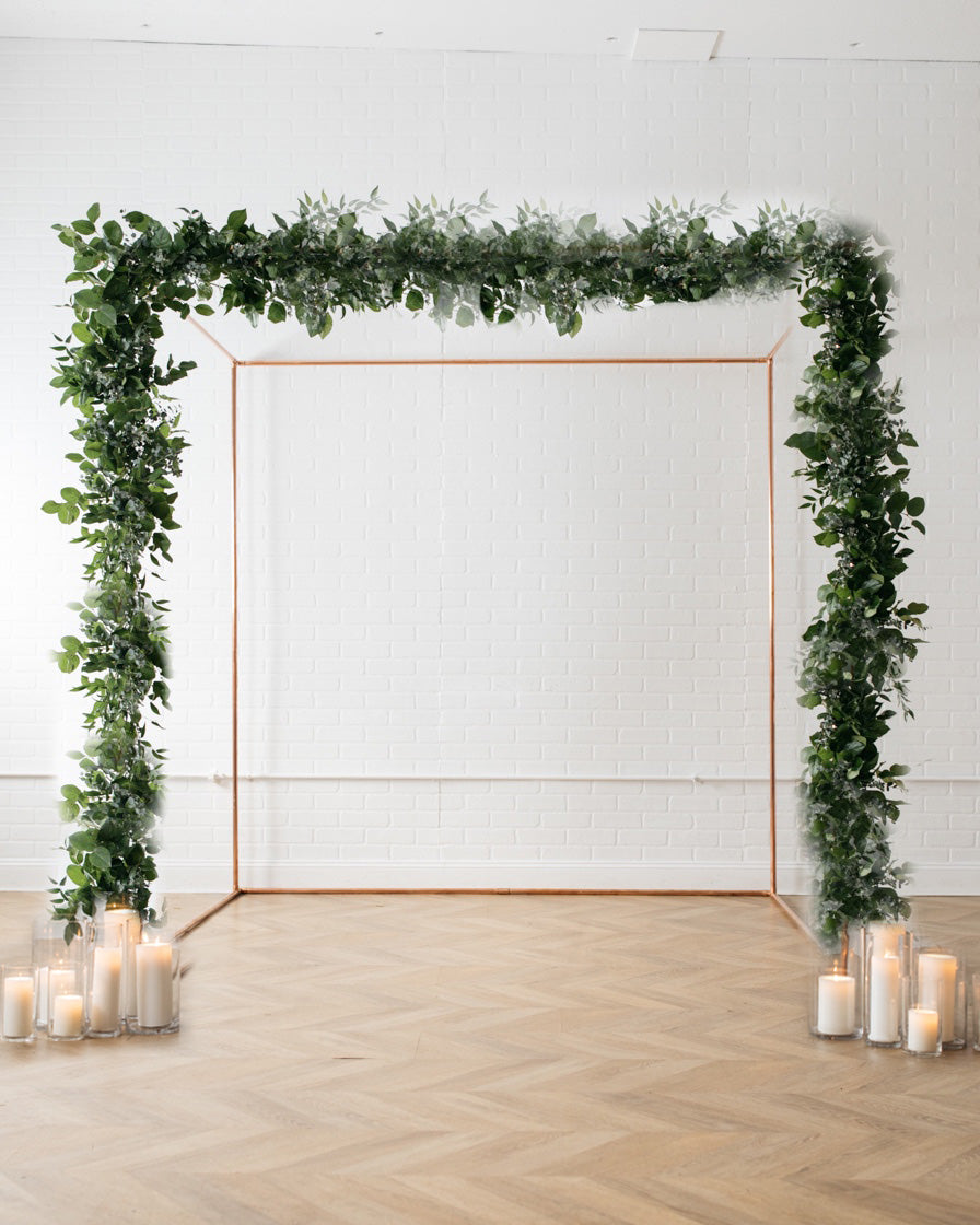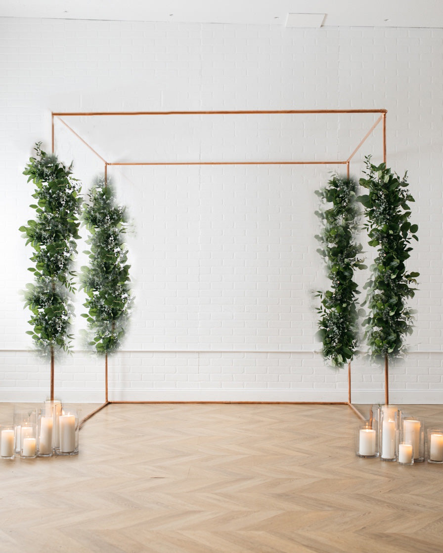 Introducing our Chuppah frame with a stunning installation of natural greenery, designed to complement your wedding theme and venue seamlessly. Whether for the altar ceremony or reception, choose the option that best suits your style. Let us handle the installation, ensuring a breathtaking focal point for your special day.