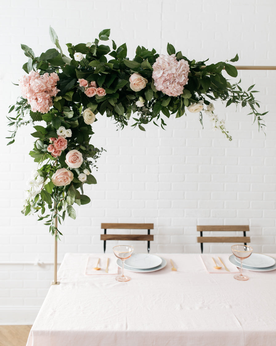 Enhance your wedding reception with our exquisite table frame adorned with florals. Create a romantic ambiance that captures the beauty of your special day with sophistication.