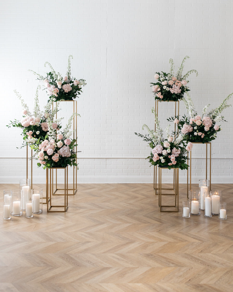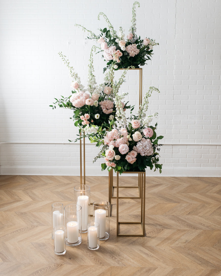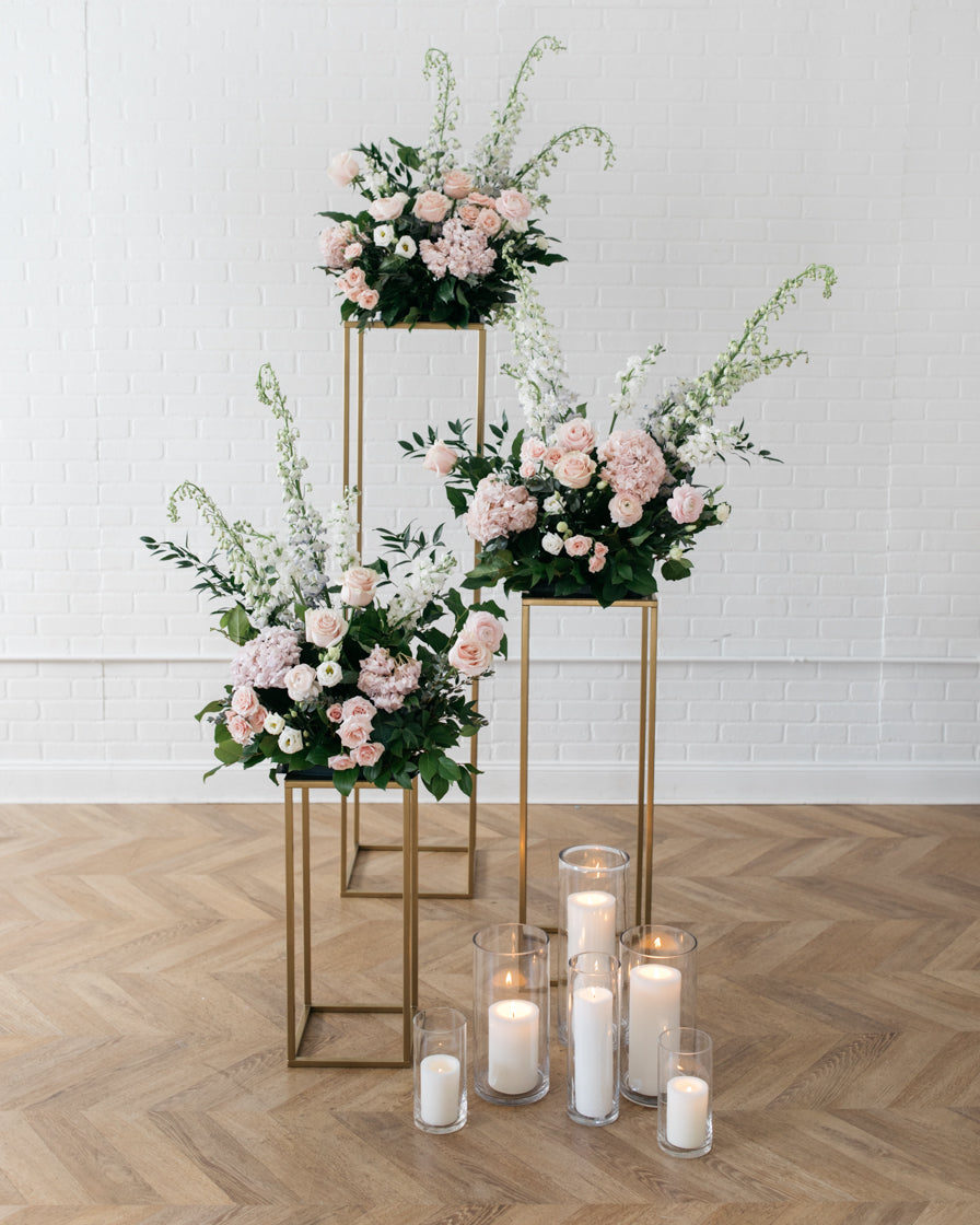 Available in small, medium, large, or perfectly aligned sets, these arrangements are ideal for highlighting the altar or framing the head table with elegance and style. Enhance their beauty further by adding candles for a touch of radiance