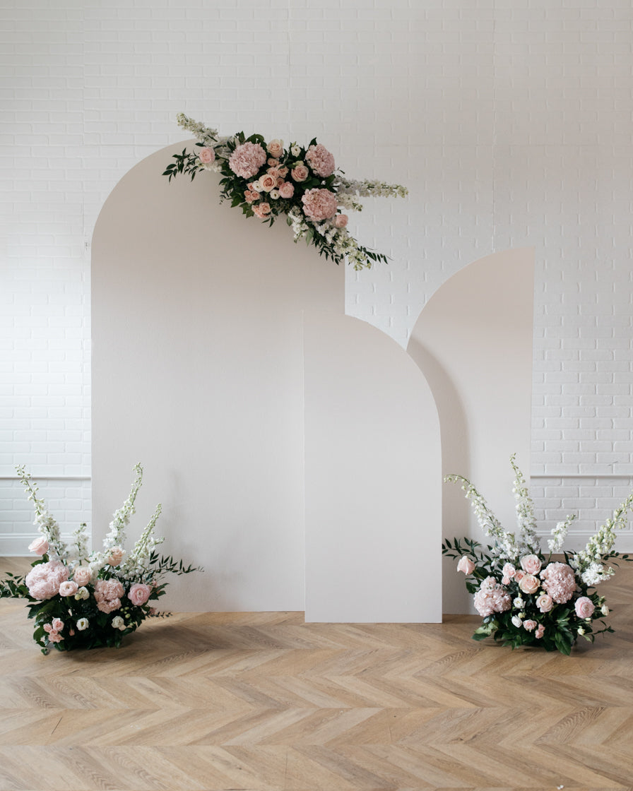 Elevate your celebration effortlessly with our panel and floral burst set. Modern design meets sophistication with timeless white panels and a captivating burst of florals. It's Ready-To-Party™ — we handle installation and styling, so you can simply enjoy.