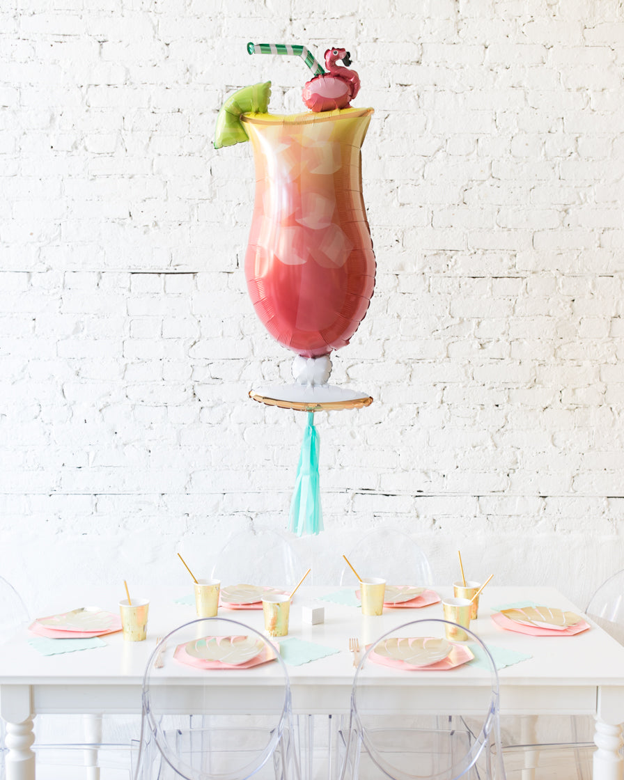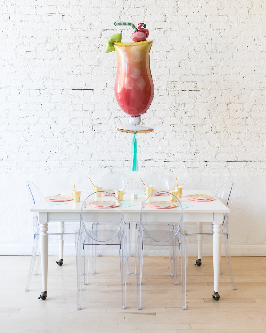This fun balloon centerpiece is a perfect choice to dress up your tablescape. Place on dinner table, mimosa bar, cocktail table or bar cart.
