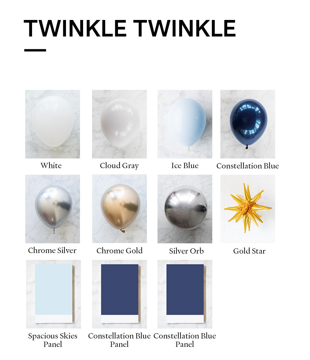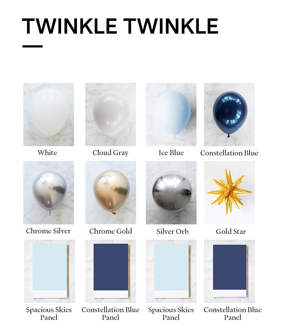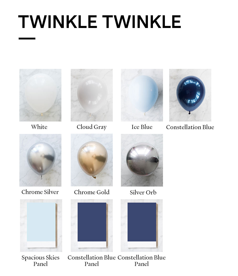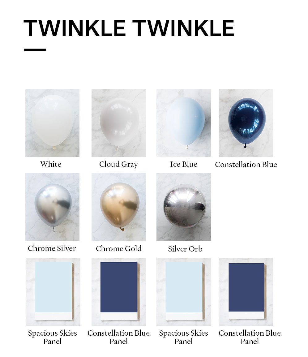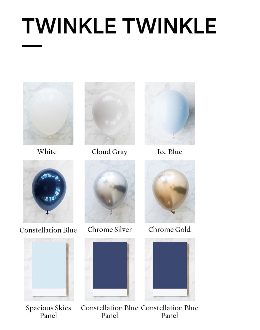 Balloon - white, cloud grey, ice blue, constellation blue, chrome silver, chrome gold