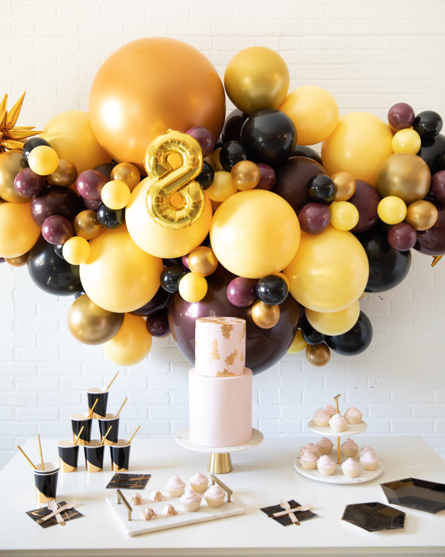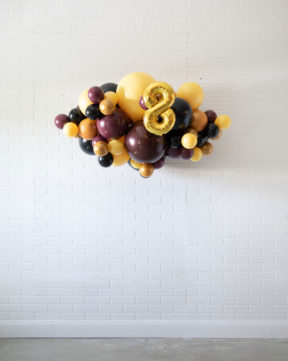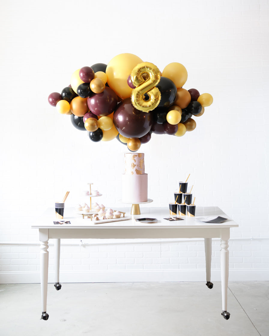 Spread some cheer with this eye-catching balloon garland. A great way to celebrate an important occasion, this air-filled 3ft balloon backdrop piece can be installed above a sweets table or on a wall for a photo op. Includes a gold number foil balloon for added fun. Complete the look with giant balloons or balloon columns from this Harry Potter collection.