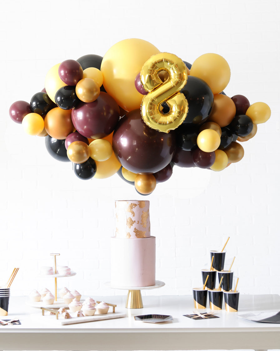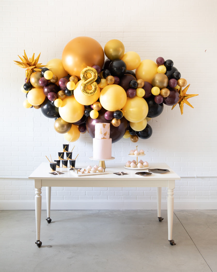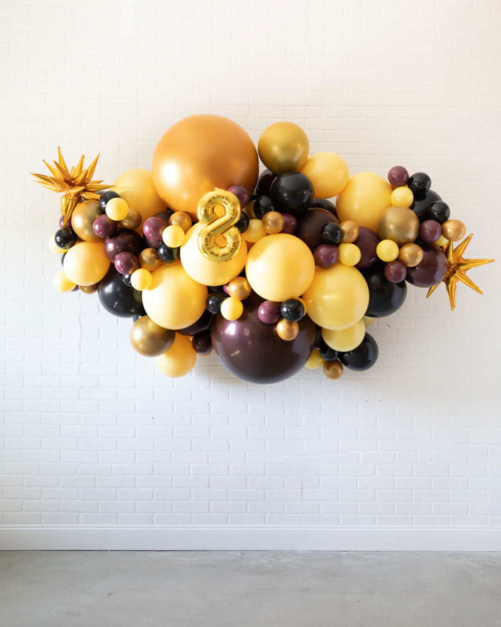 Spread some cheer with this eye-catching balloon garland. A great way to celebrate an important occasion, this air-filled 3ft balloon backdrop piece can be installed above a sweets table or on a wall for a photo op. Includes a gold number foil balloon for added fun. Complete the look with giant balloons or balloon columns from this Harry Potter collection.