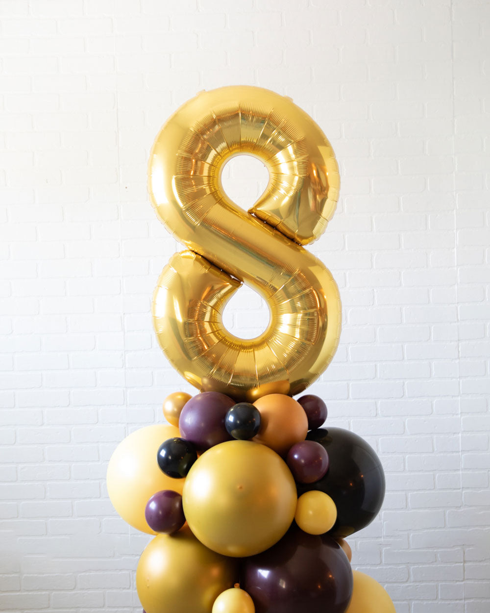 Our Harry Potter themed balloon column is an adorable addition to your Harry Potter themed birthday party! Created with air-filled balloons and topped with a gold foil number, this balloon arrangement is a picture perfect party.
