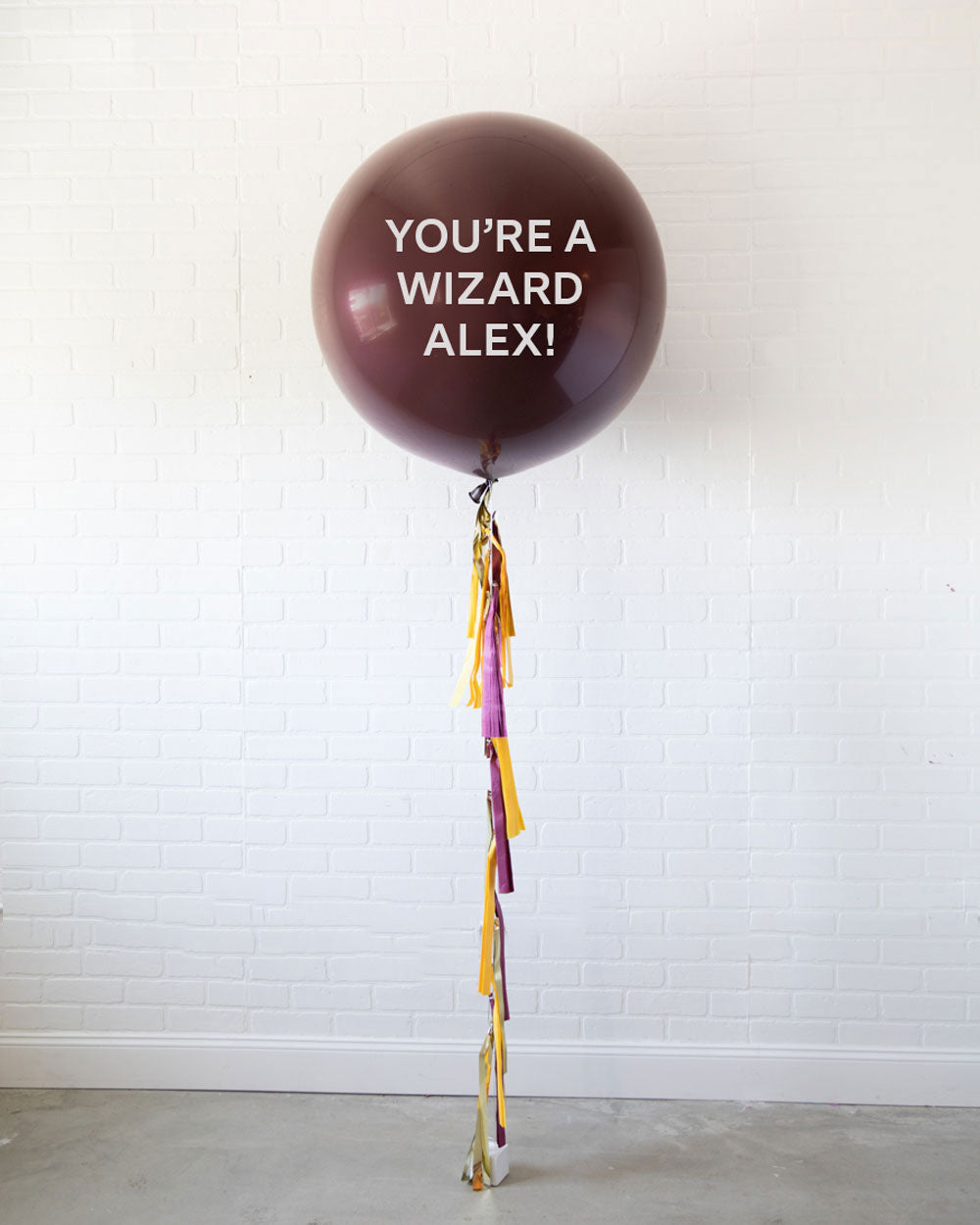 Our Harry Potter themed giant balloon is a picture perfect balloon decoration for a birthday. This giant balloon includes a personalized message for added fun!