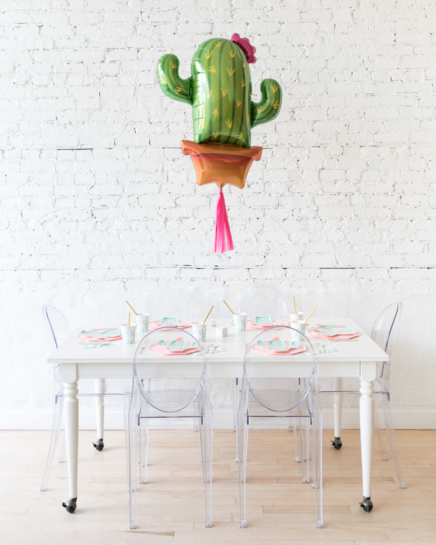 39in Cactus Foil Balloon with Bright Pink Skirt Centerpiece