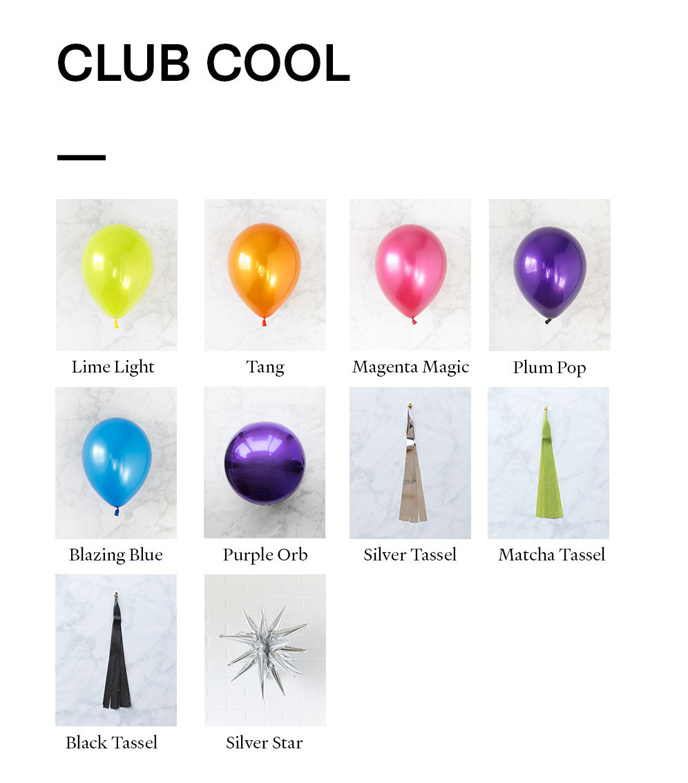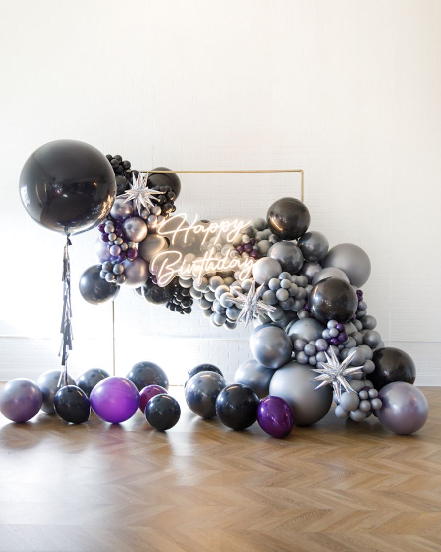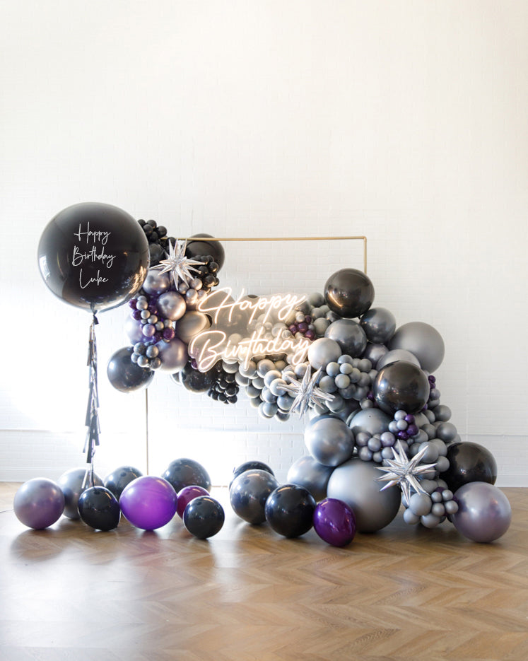 Make any space into a celebration with this balloon set, perfect for a teen birthday! This festive decor set includes a garland on our signature frame, giant balloon with tassel and floor balloons. They can easily celebrate their birthday in this Night Club inspired color scheme.