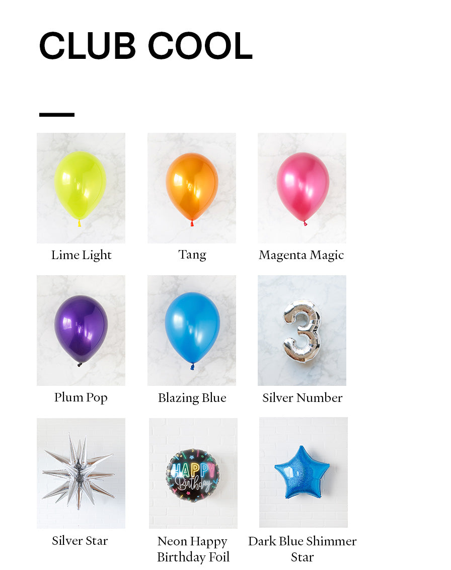 Make this a birthday they'll never forget with this grand balloon wall pairing! Our signautre balloon wall and jumbo balloon number pedestal create the ultimate backdrop for your teens birthday! In stylish Night Club colors, they'll be celebrating in cool club style.