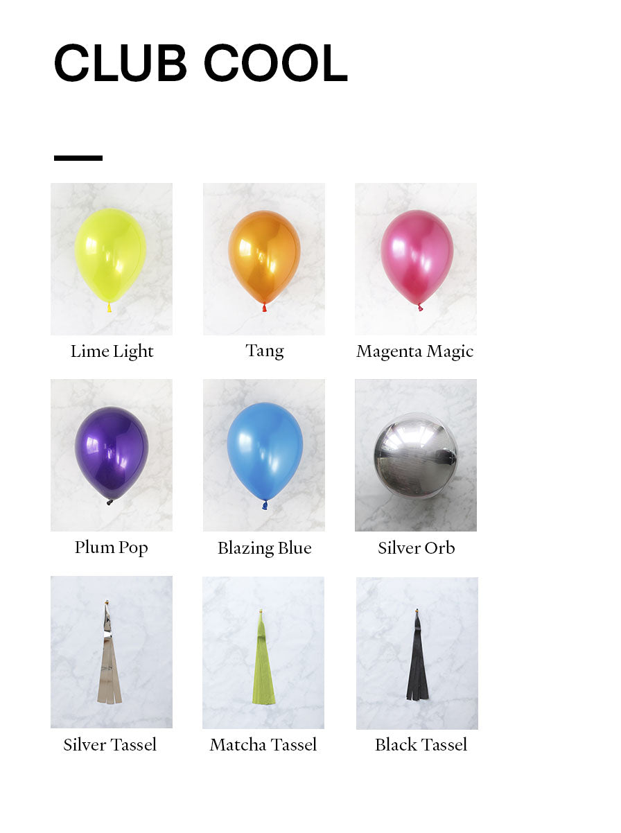 Balloon- lime light, magenta magic, tang, blazing blue, plum pop