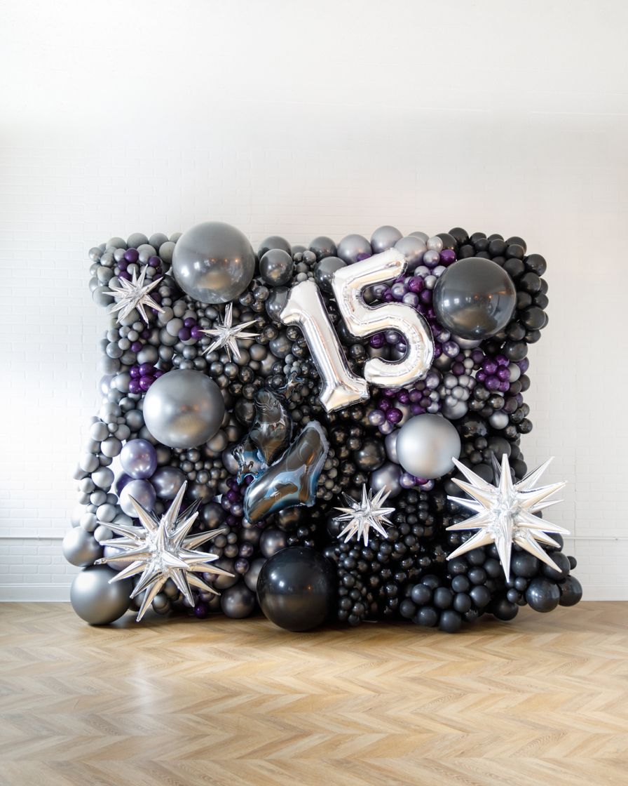 An eye-catching balloon piece fit for an outdoor event. This bold balloon backdrop makes the ultimate statement in bright shades. This design includes foil accents for a teens themed birthday they'll never forget. Complete the look with balloons from this collection.