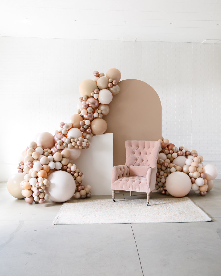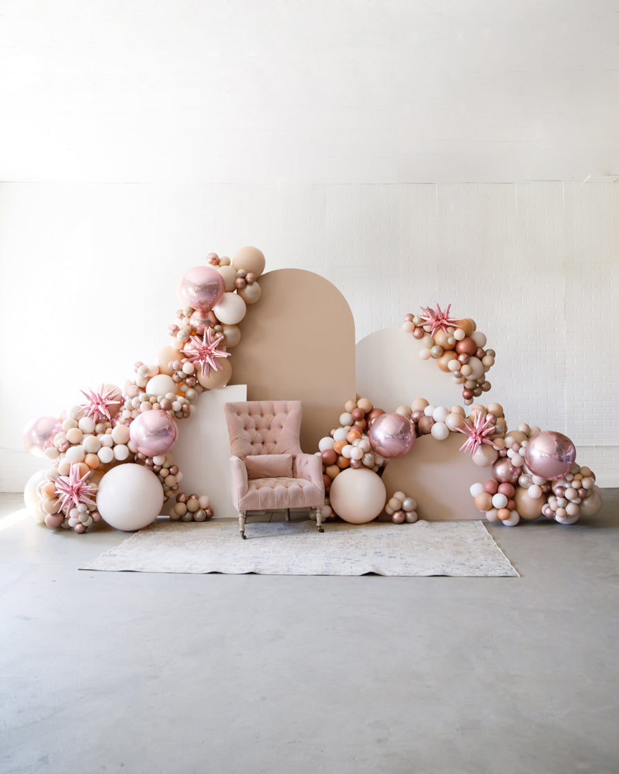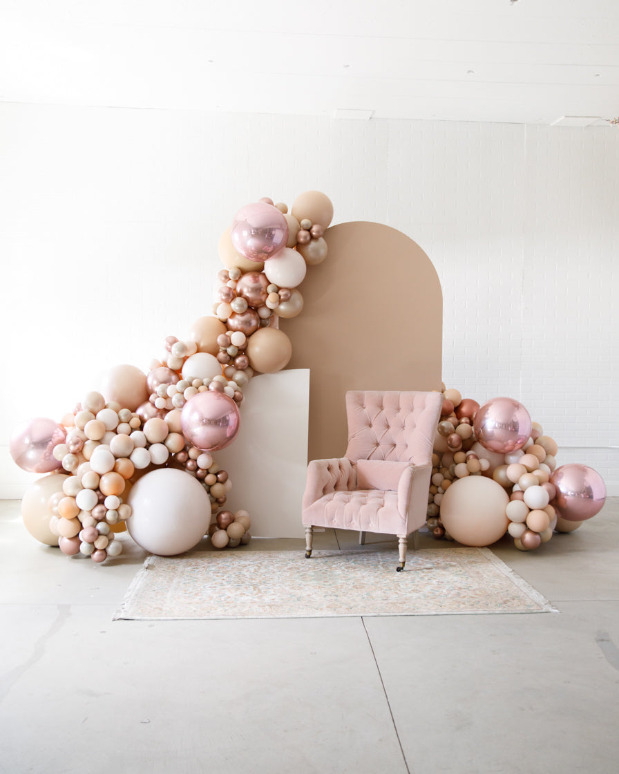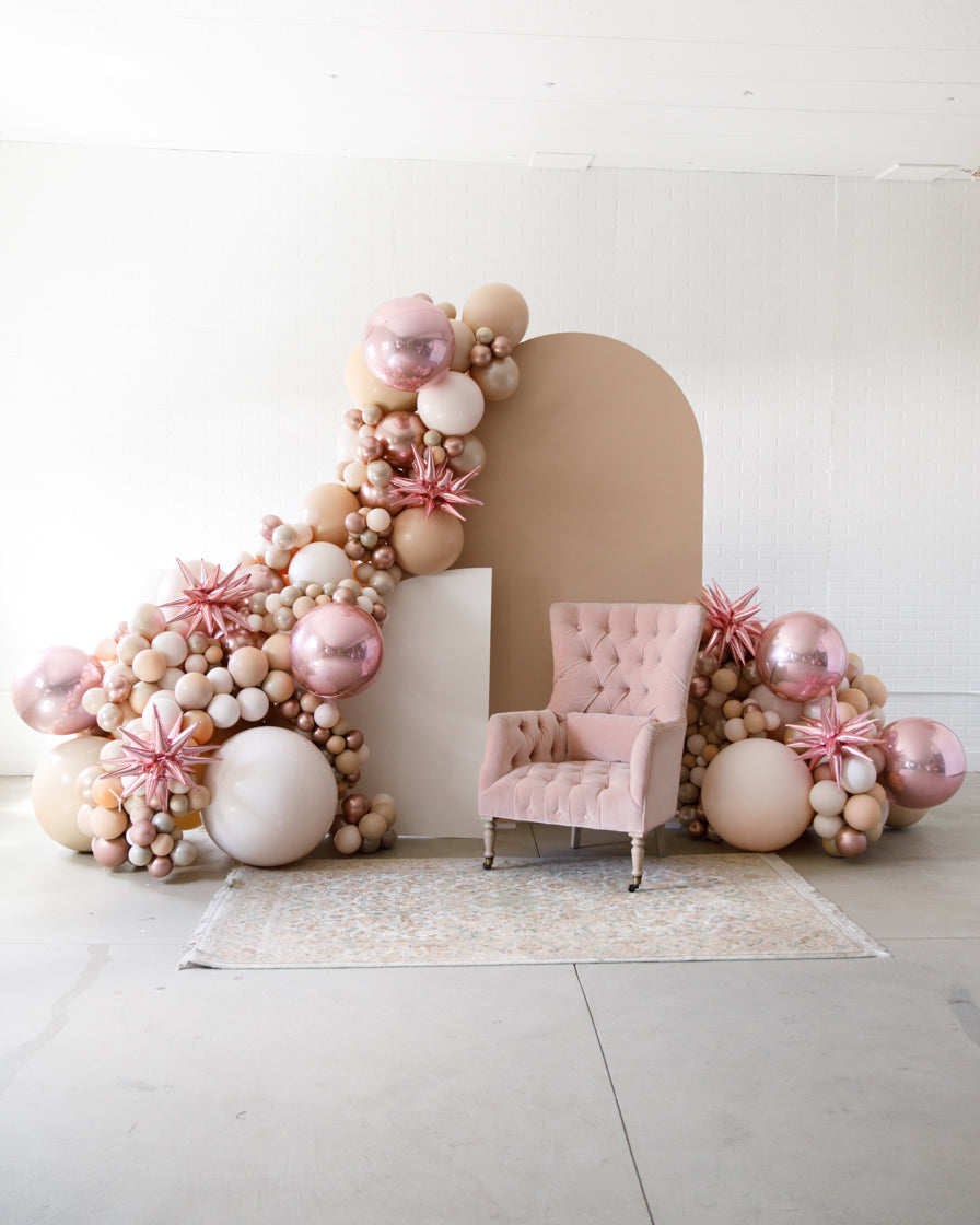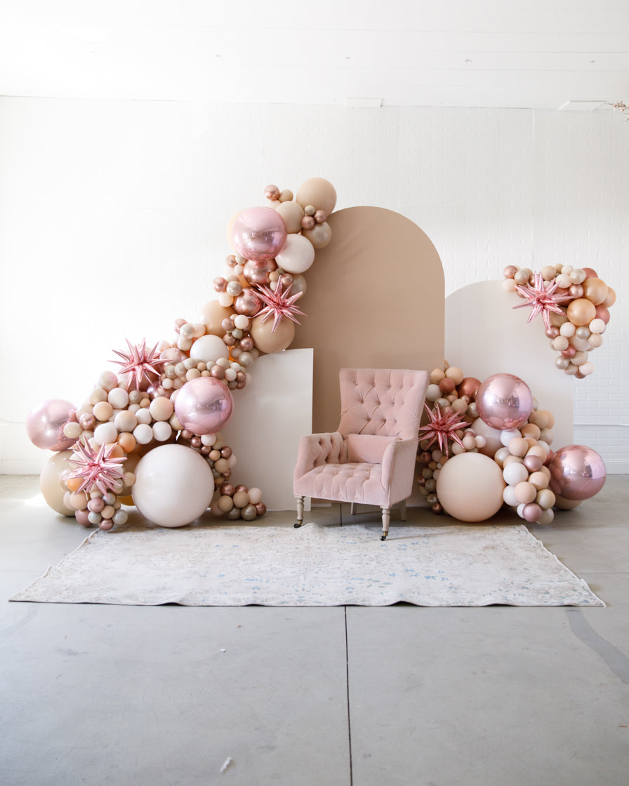Stand out in style with this panel and balloon garland design. This includes a 7ft panel backdrop with organic balloon garland to match. Add foil accents to make your photo backdrop stand out even more!