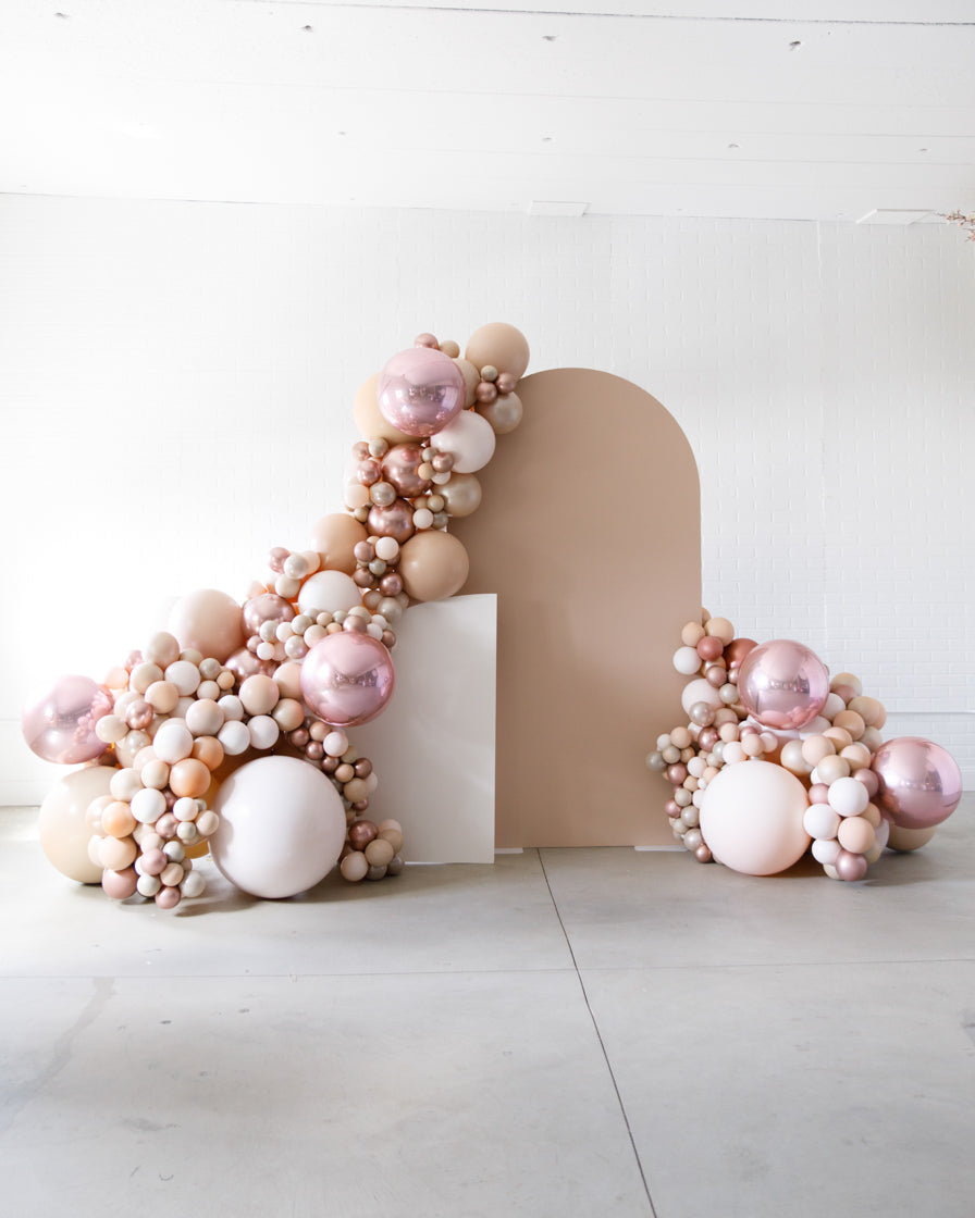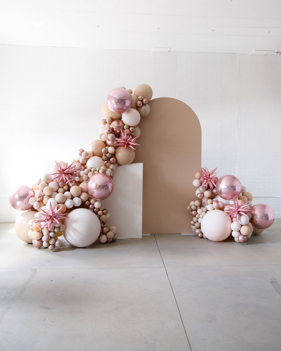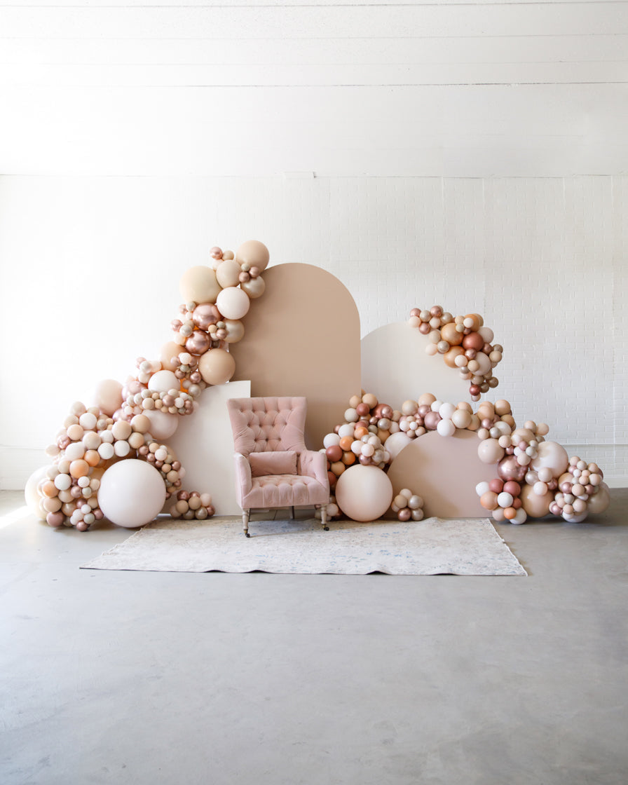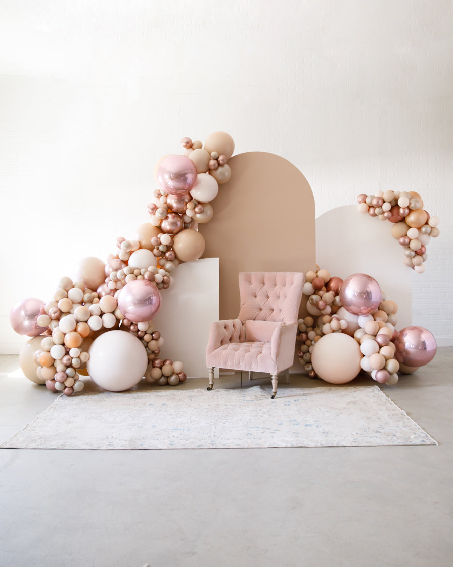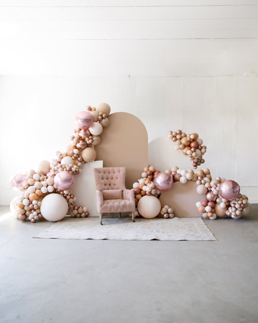 Stand out in style with this panel and balloon garland design. This includes a 7ft panel backdrop with organic balloon garland to match. Add foil accents to make your photo backdrop stand out even more!