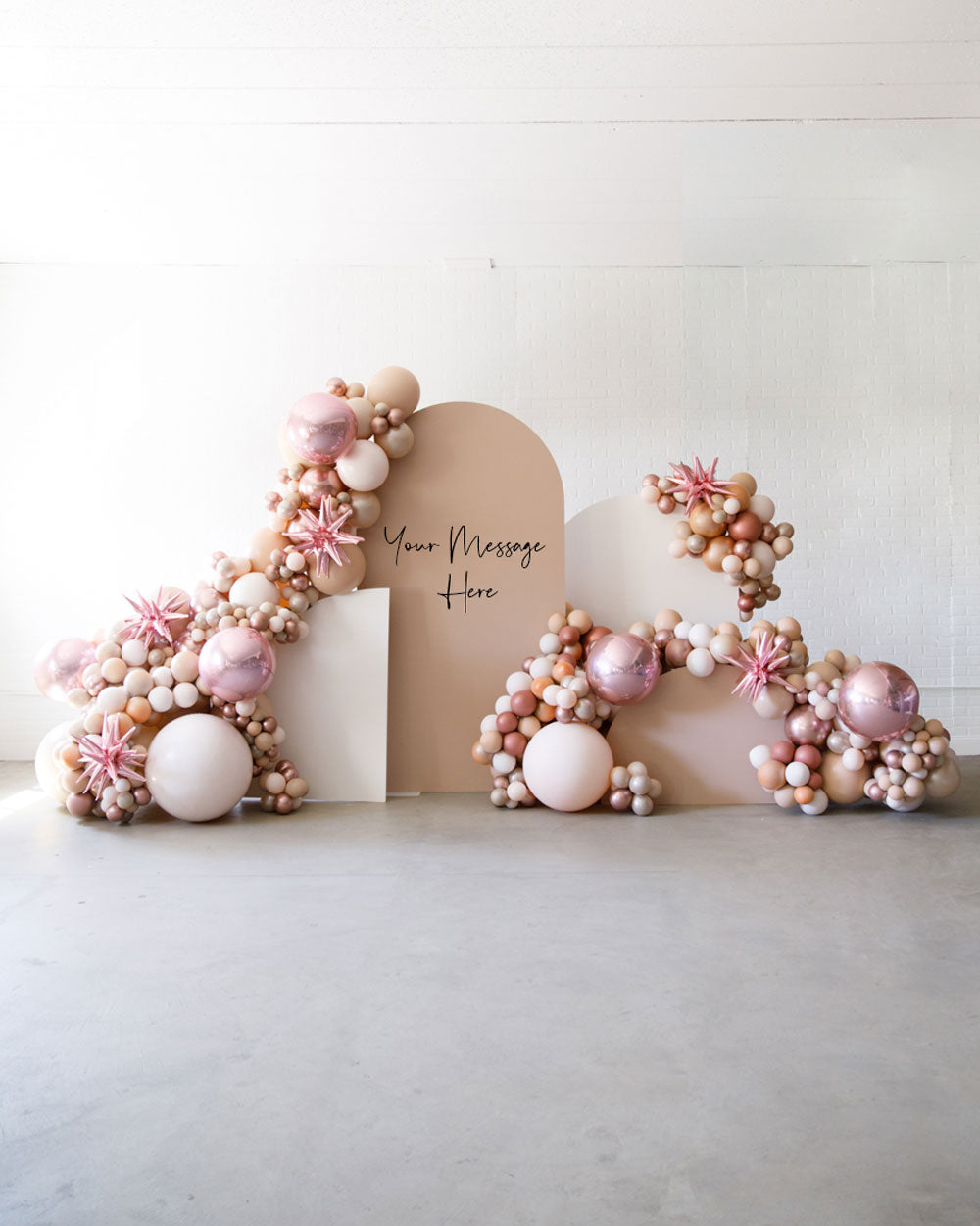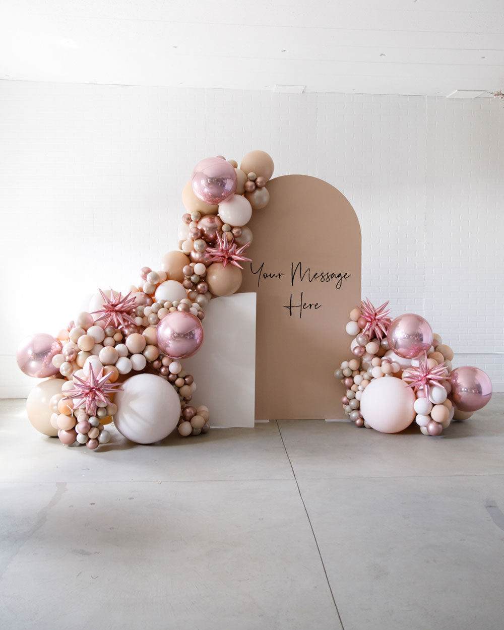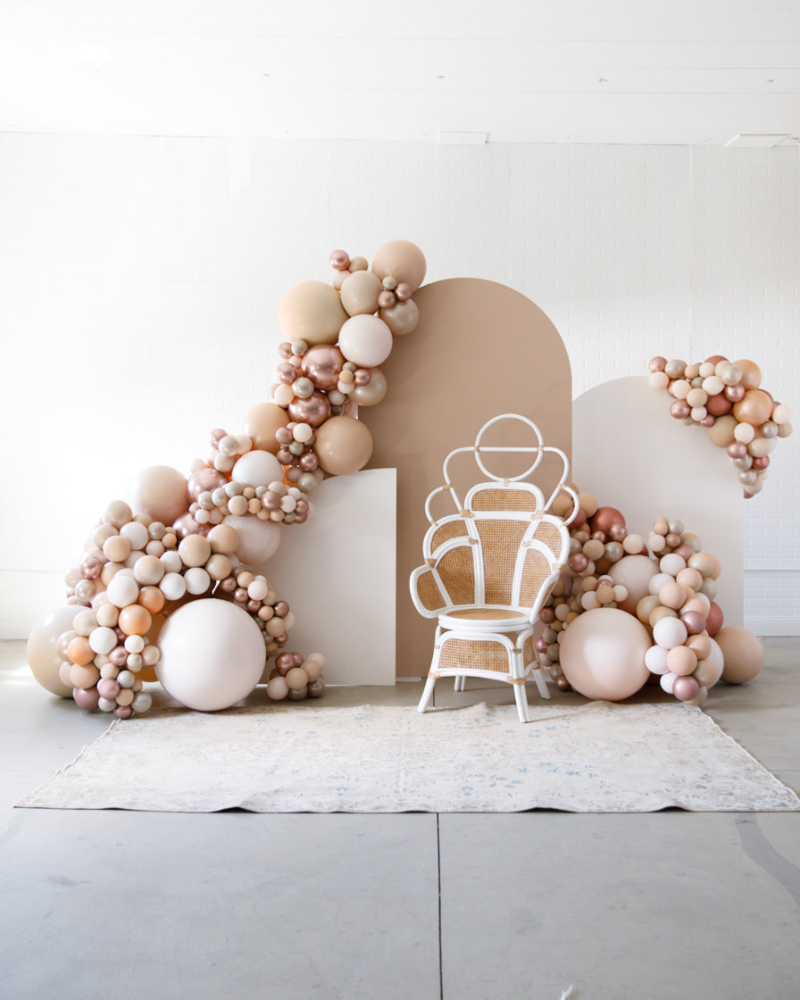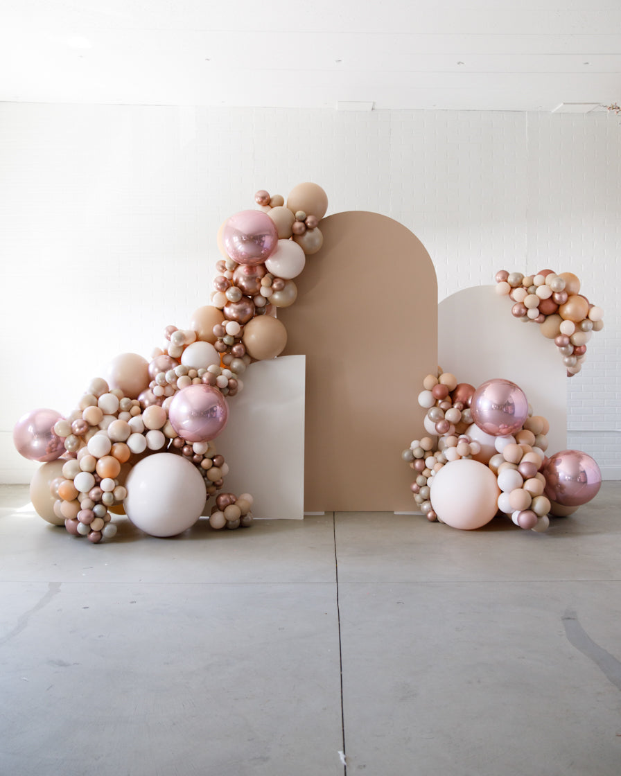 Stand out in style with this panel and balloon garland design. This includes a 7ft panel backdrop with organic balloon garland to match. Add foil accents to make your photo backdrop stand out even more!