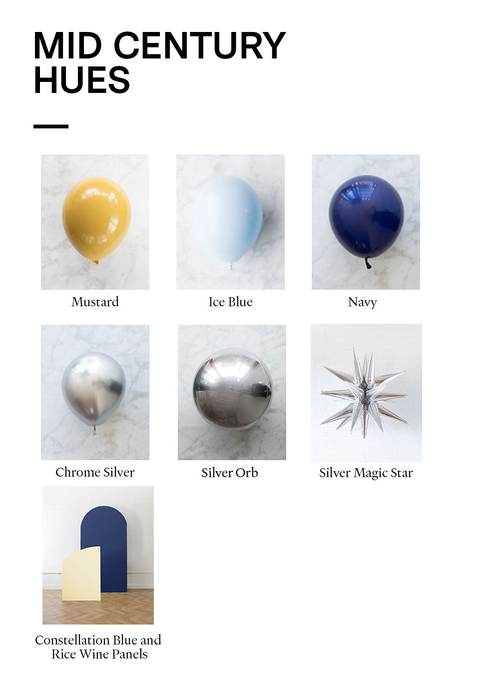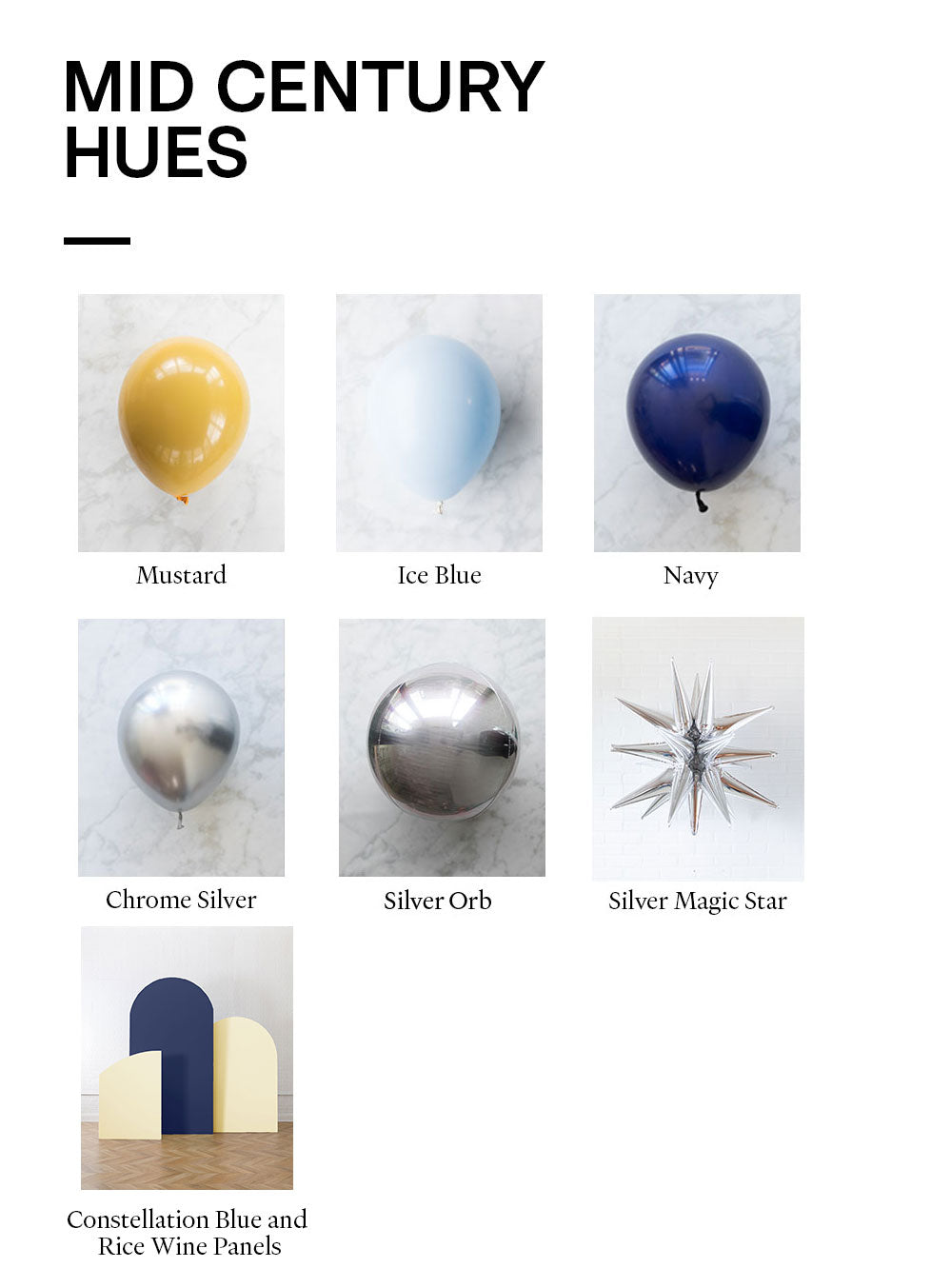 Balloon - mustard, ice blue, navy, chrome silver