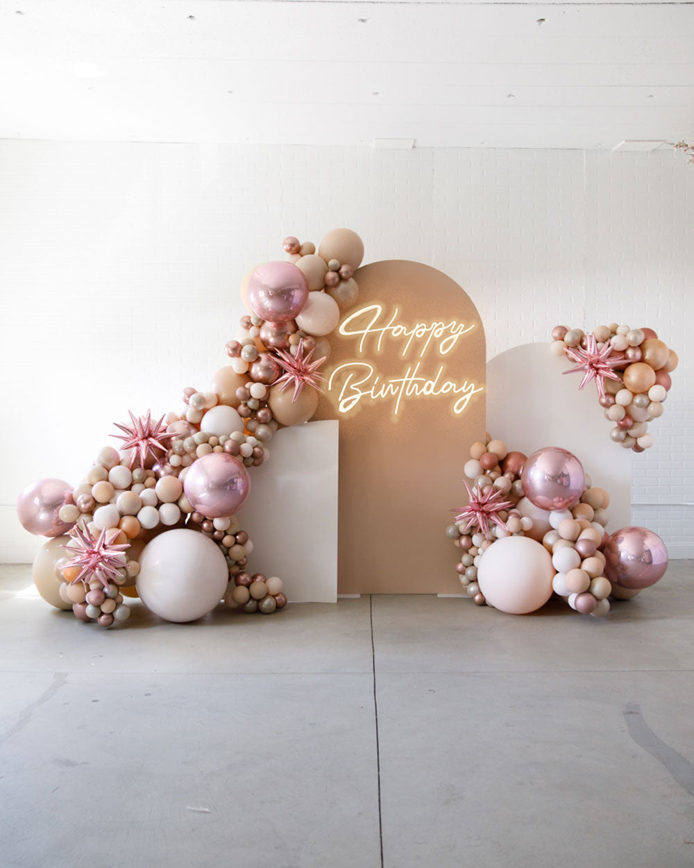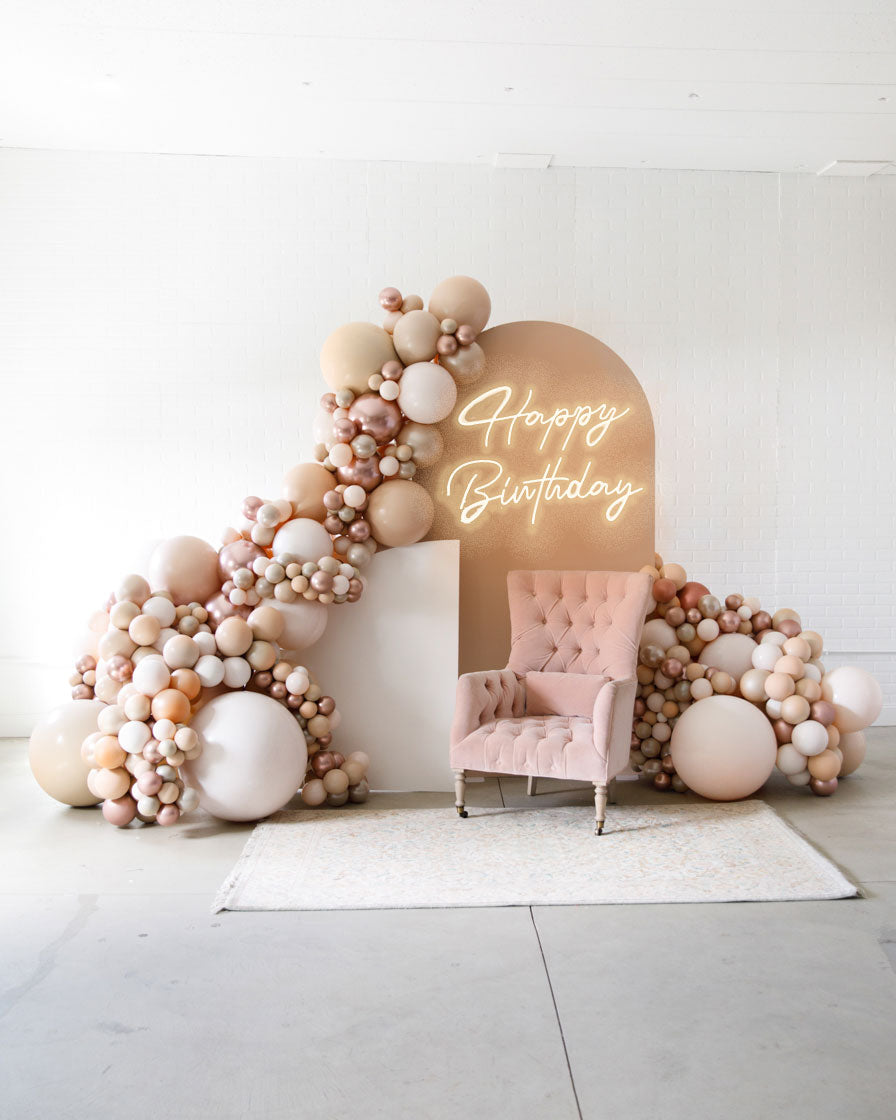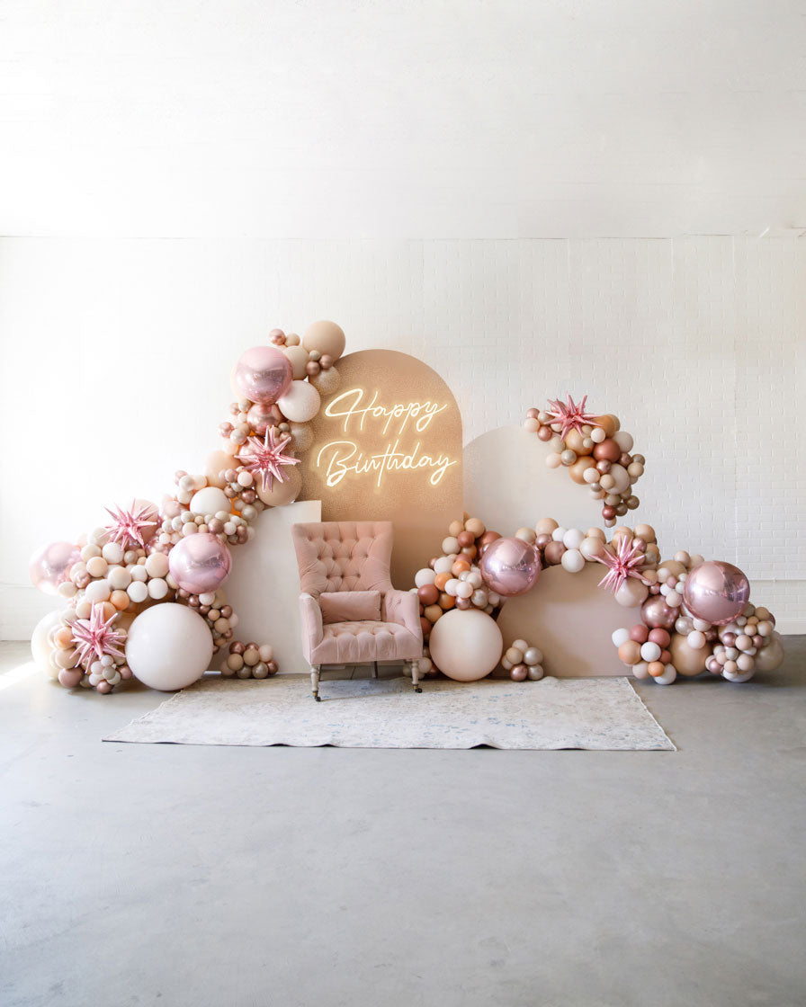 Stand out in style with this panel and balloon garland design. This includes a 7ft panel backdrop with organic balloon garland to match. Add foil accents to make your photo backdrop stand out even more!