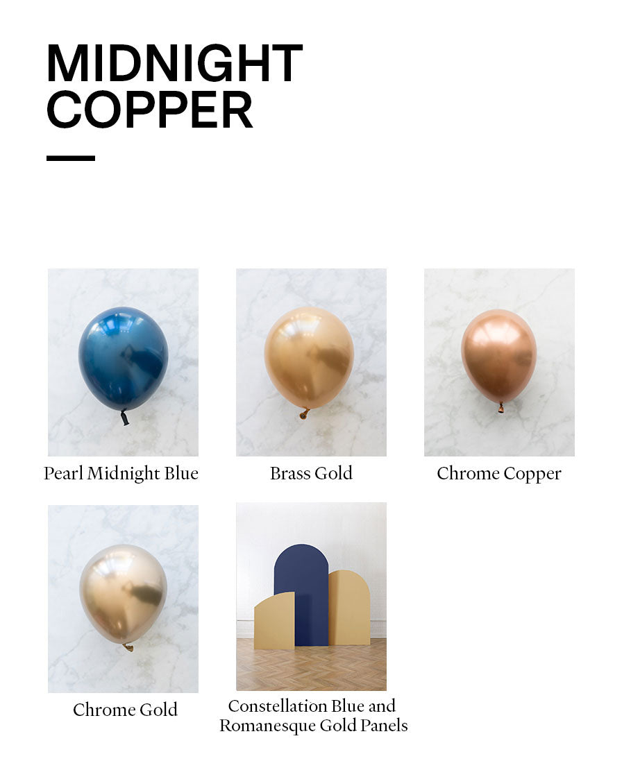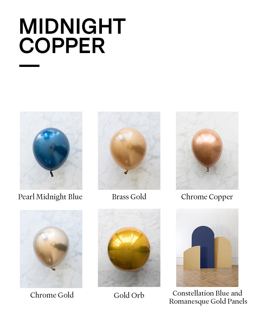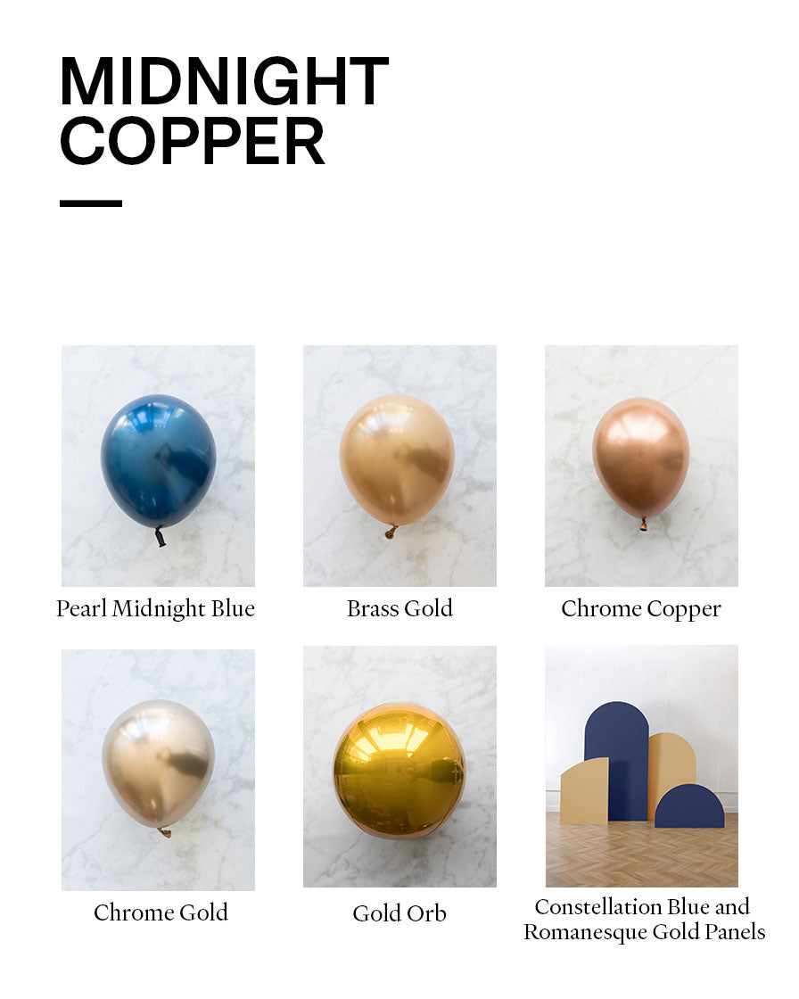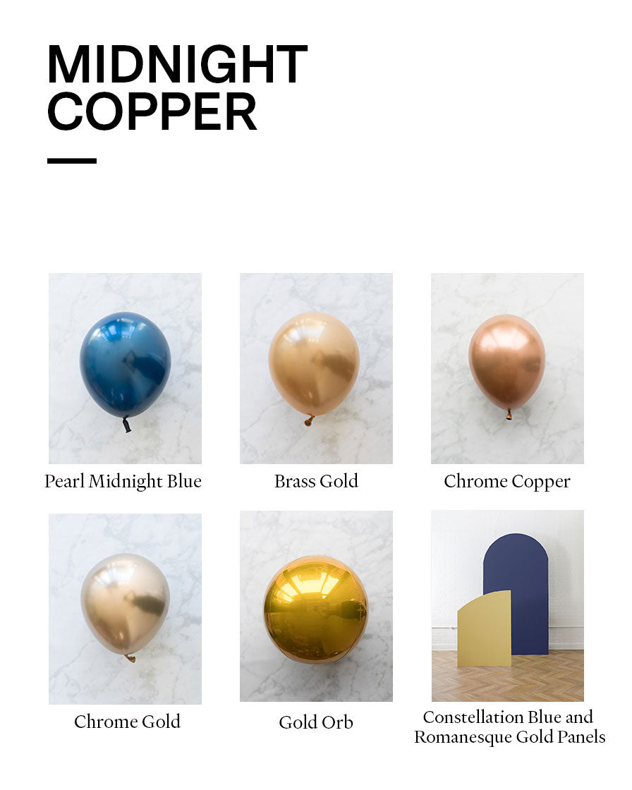 Balloon - chrome gold, chrome copper, pearl midnight blue, brass gold