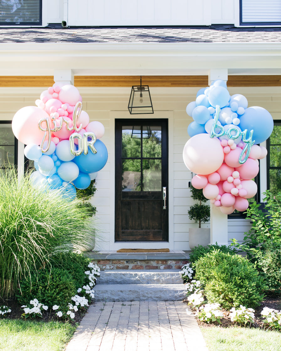 Create a gender reveal photo op you won't forget with our foil balloon garland! This pink and blue air filled garland has boy or girl message in foil balloons for added fun! This piece can be installed on a fence, staircase or porch. Complete the look with mosaic letters or balloon columns from this same collection.