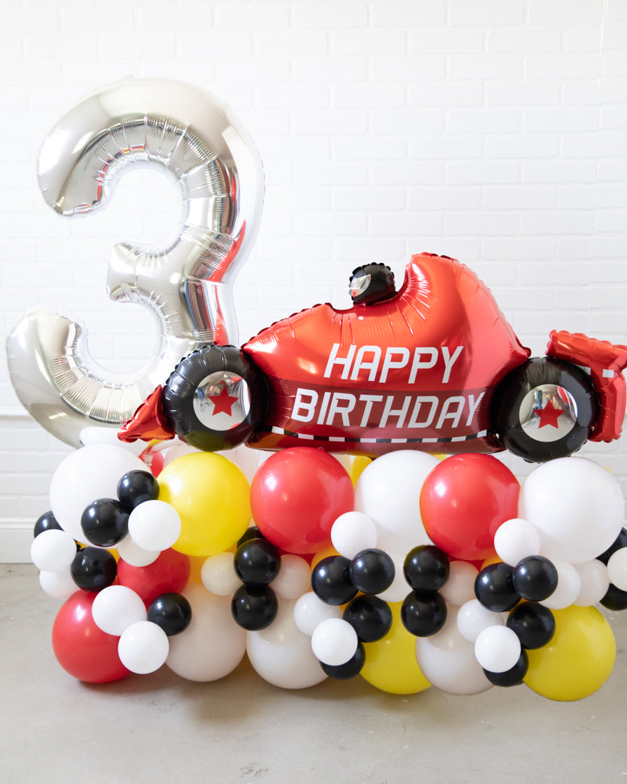 Add a fun touch to your little boys birthday with our race car inspired number and foil pedestal. This includes a 34" silver number and Race Car balloon to make a statement at your race car themed party. Celebrate any age and dress up your sweets table or photo backdrop for a unique look.