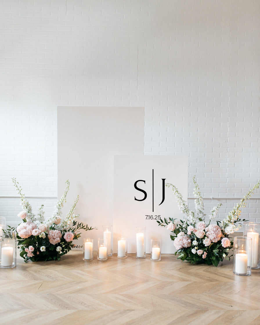 For extra impact and warmth add a set of 12 pillar candle sand customize your celebration with a personalized message, making every moment unforgettable.