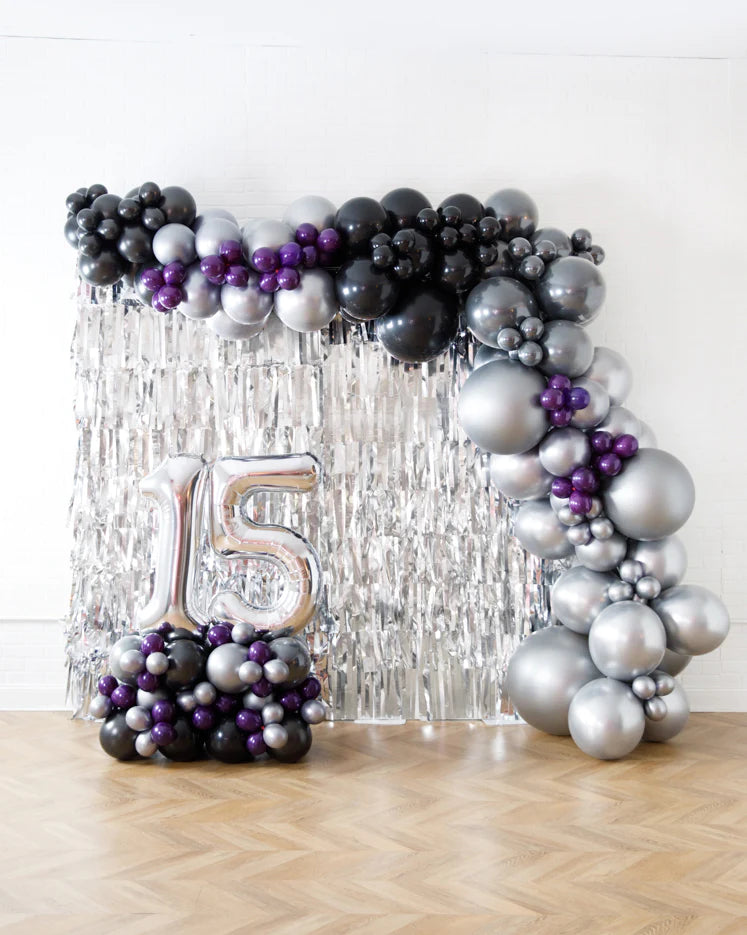 Dress up any space this is picture perfect balloon set up. With a stylish number pedestal and matching garland, your teen can celebrate their birthday effortlessly! This also includes a festive tassel wall, perfect for photos.