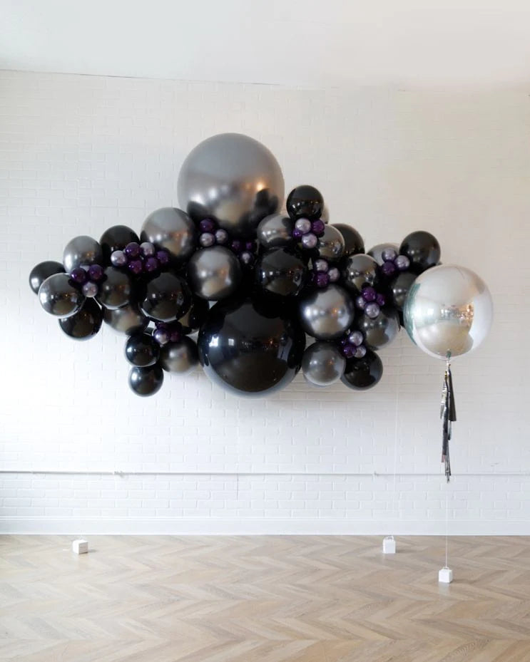 Fill the room with this bold birthday balloon set! This includes a balloon wall with foil number and giant foil orb balloon to create and instant backdrop.